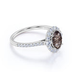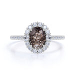 1.50 ct Oval Black Rutilated Quartz Cluster Pave Engagement Ring