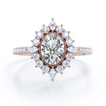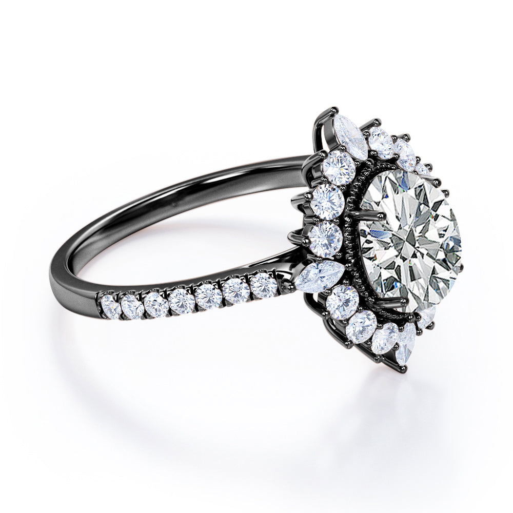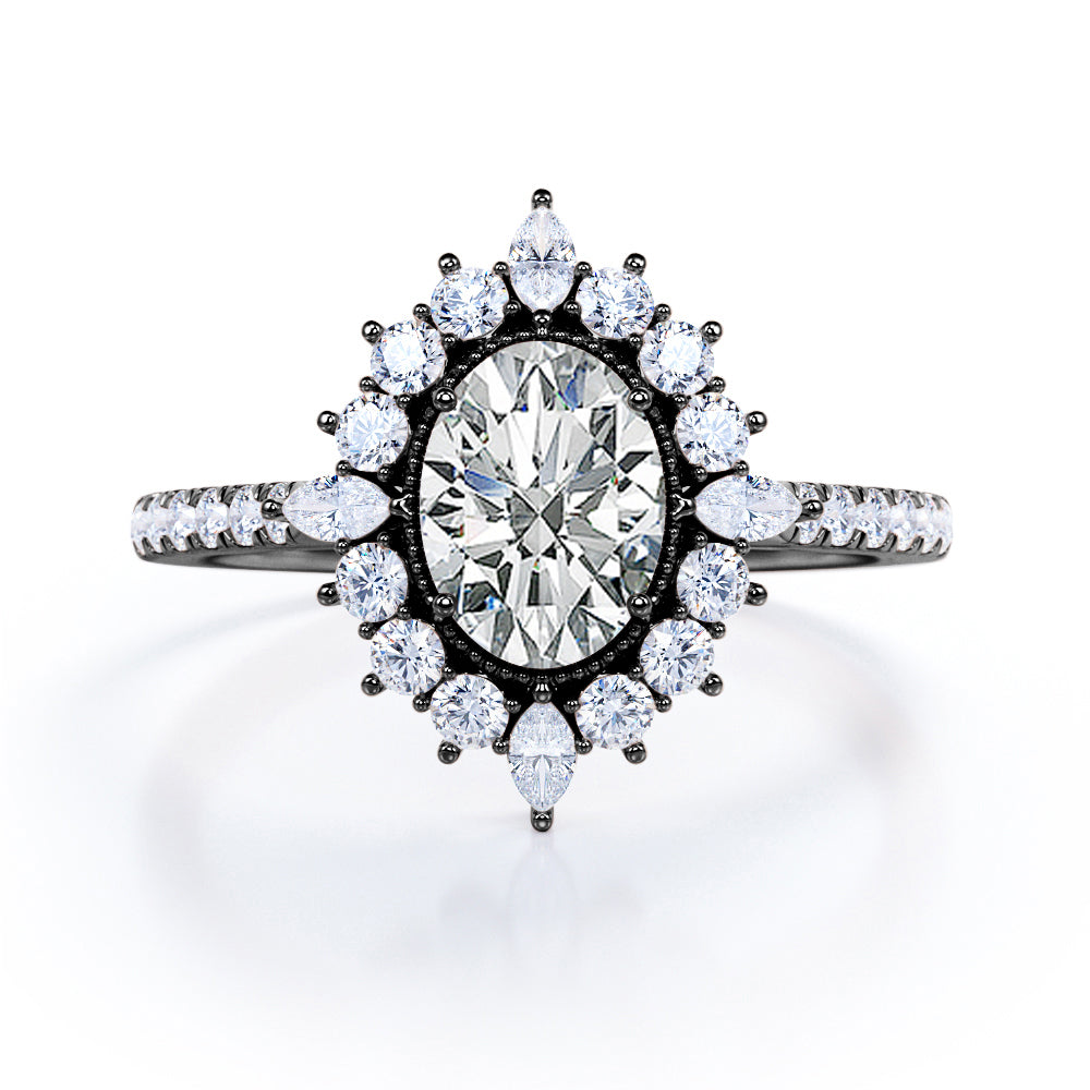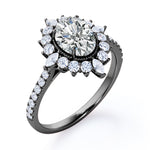 Enchanted Classic Milgrain Halo 0.8 carat Oval Moissanite and Diamond Engagement Ring in Black Gold