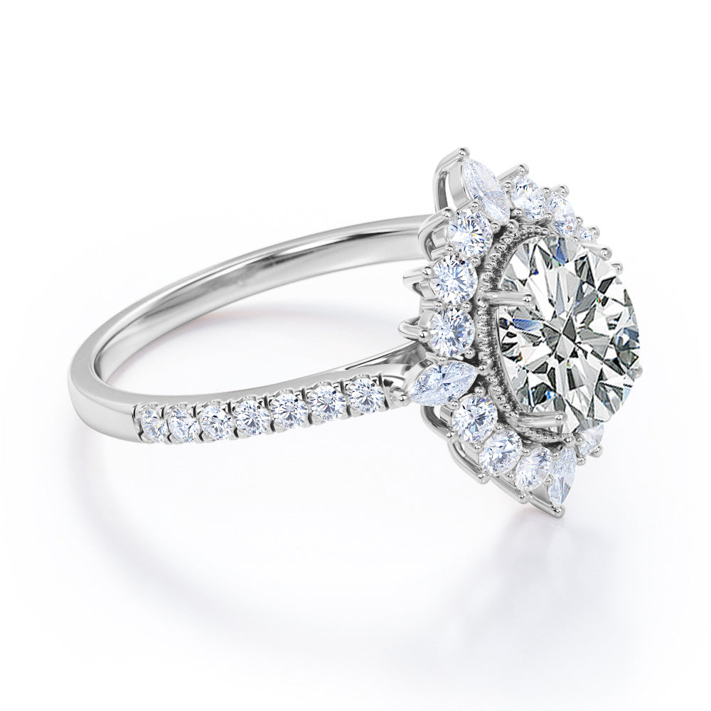 Please note that the type of side stone occurs according to metal type; if the band is silver, the side stone of the ring will be Moissanite and if the band is gold, diamond will be employed as side stone.