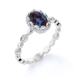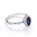 1.25 Ct Oval Cut Lab Alexandrite Halo Engagement Ring