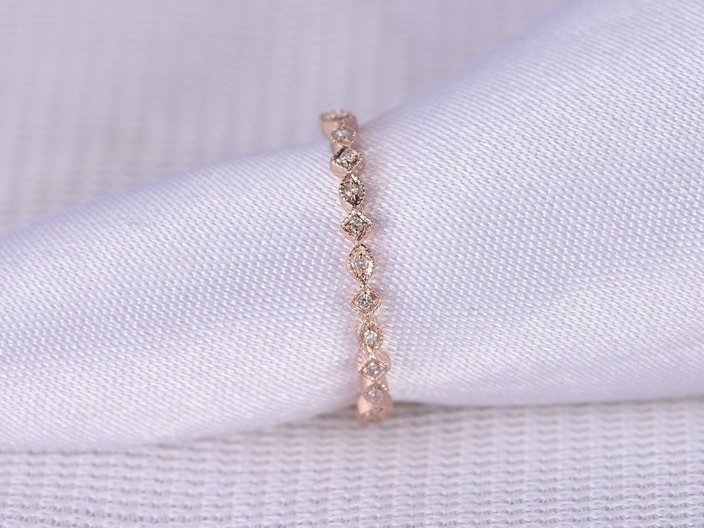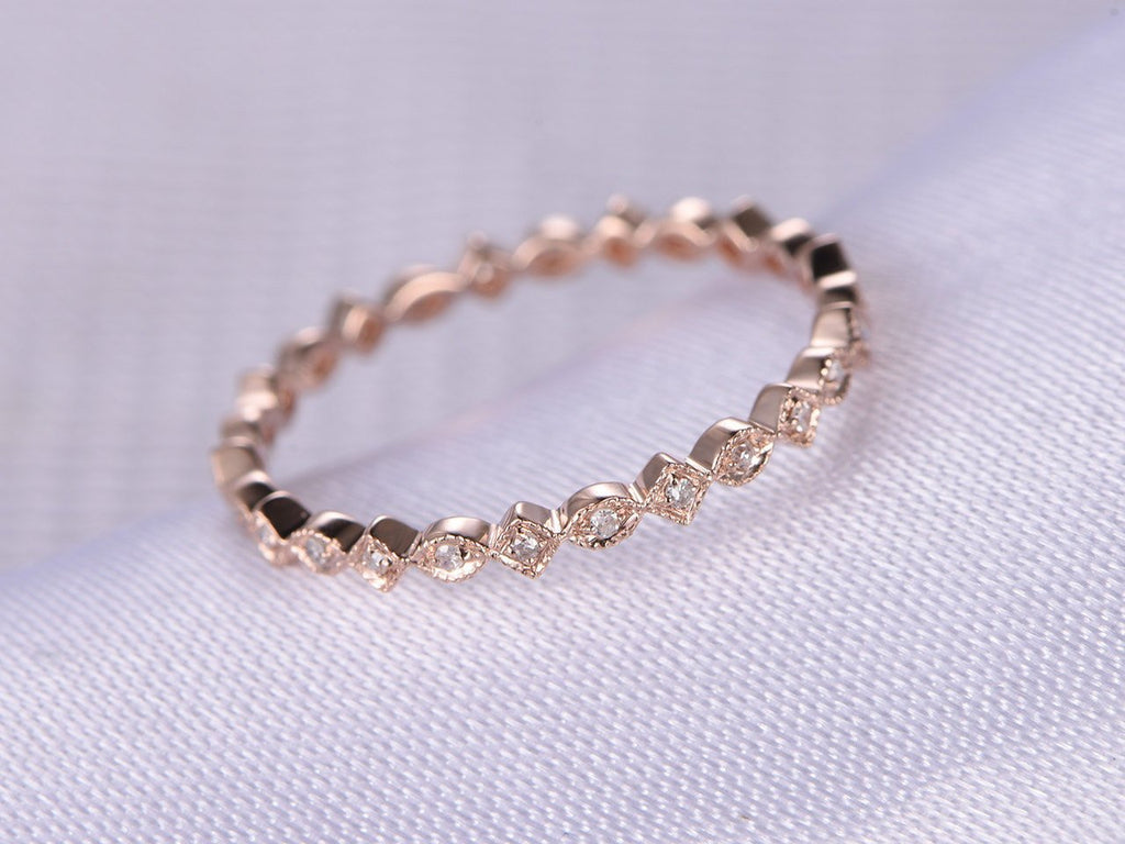 Eternity .50 Carat Round cut Diamond Wedding Ring Band Art deco design in Rose Gold