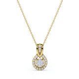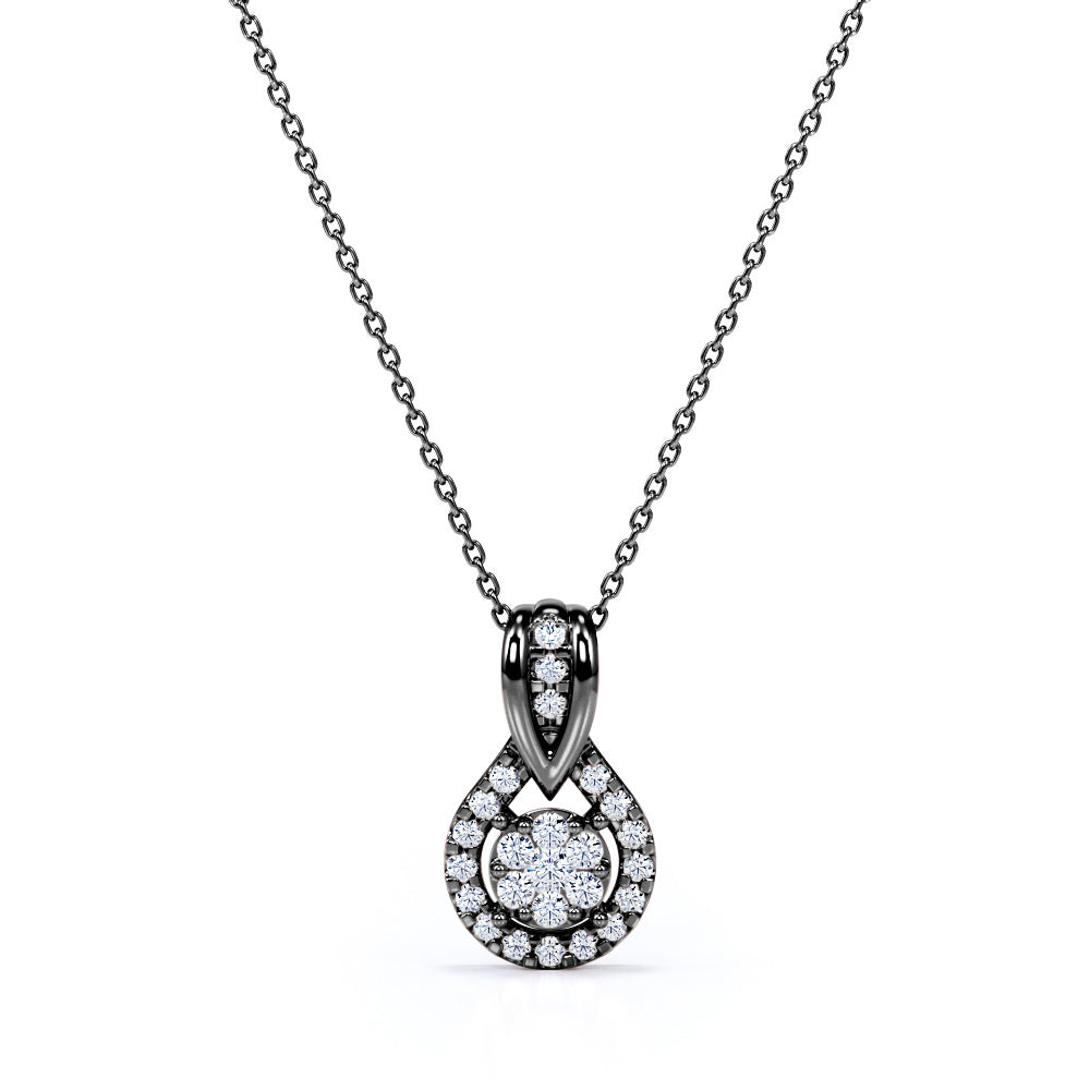 Fahionable 0.25 Carat Round Cut Moissanite Pave Pendant Necklace In Rose Gold. A smart choice you'll want to wear day after day, this sparkling necklace speaks to your classic sense of style. Crafted in sterling silver, it features a shimmering round cut moissanite stones spread over like a flower wrapped in sparkling double halo frames, bringing out it's beauty and sparkle. Whether it's for a special gift or a treat for yourself, this elegant necklace is an endearing choice. This fashionable 0.25 carat round cut moissanite pave pendant necklace in rose gold can also be customized into 18k Gold plating over silver, 10k Gold or 14k Gold as per your preference.