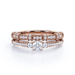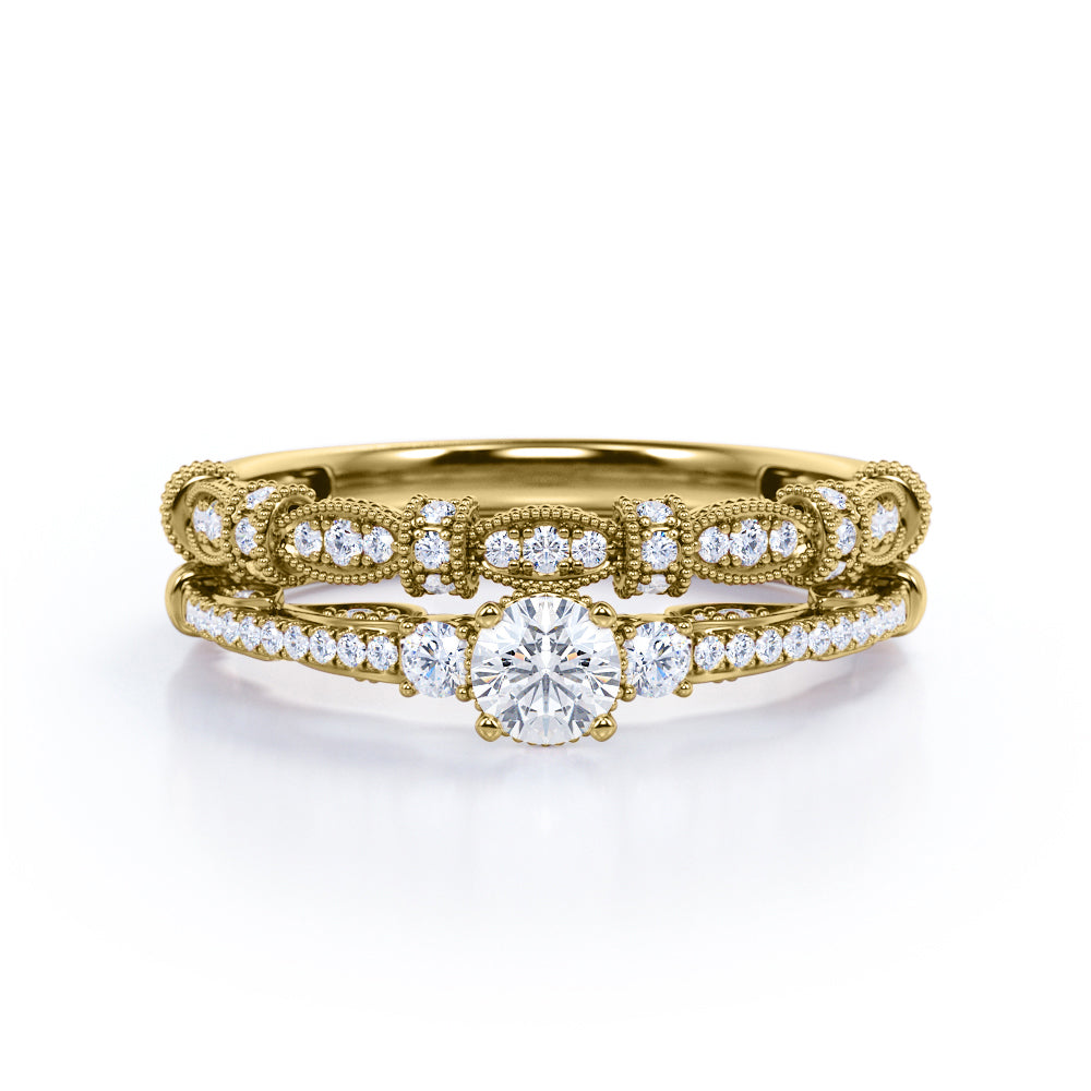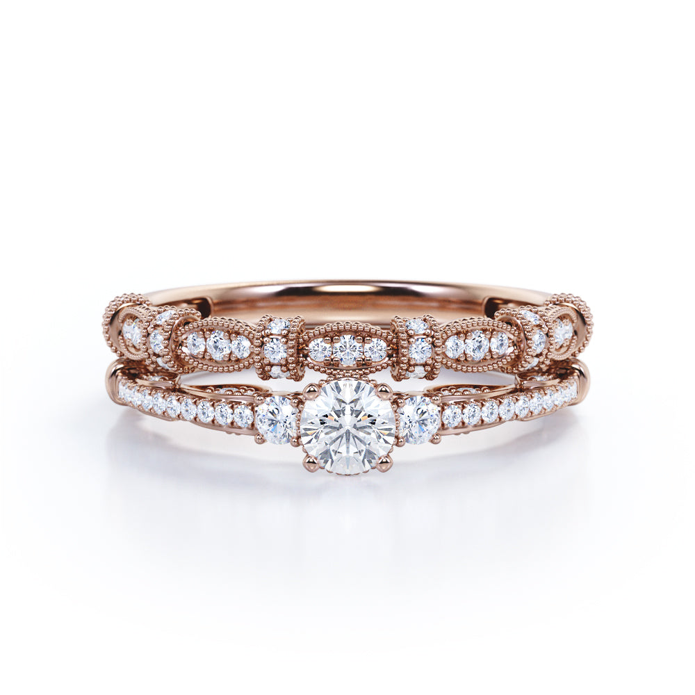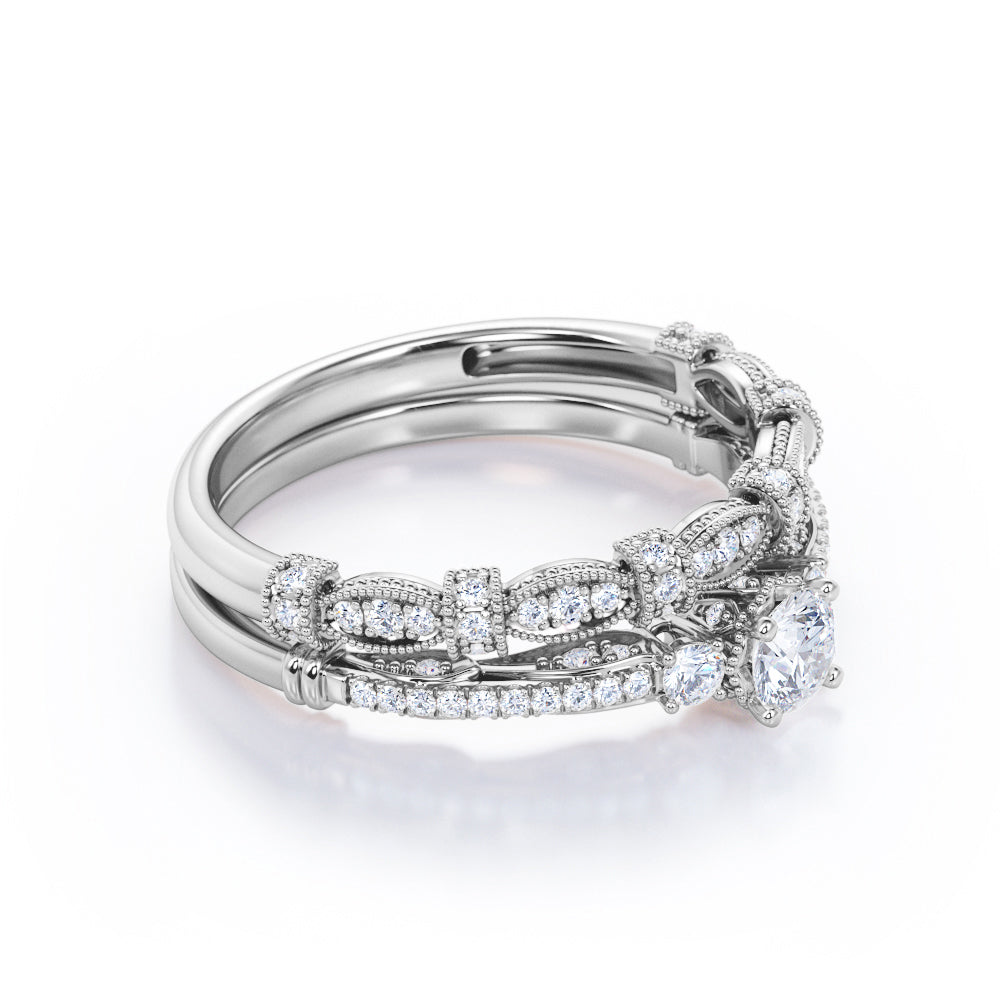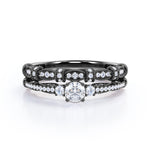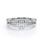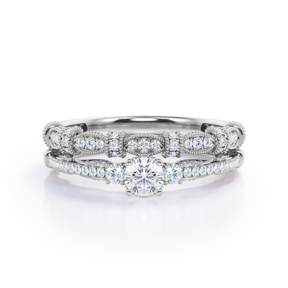 Fashionable 1.25 carat Round Moissanite and Diamond Bridal Ring Set in White Gold - Proposal Ring