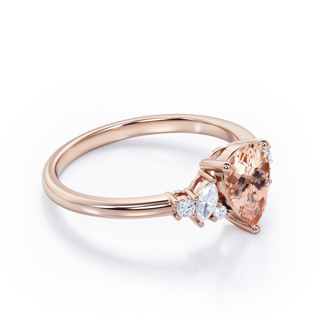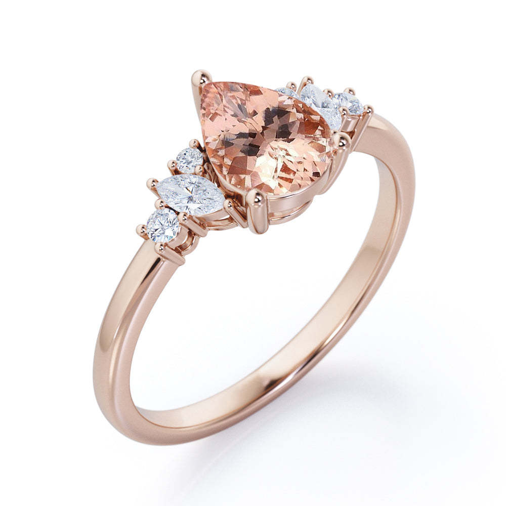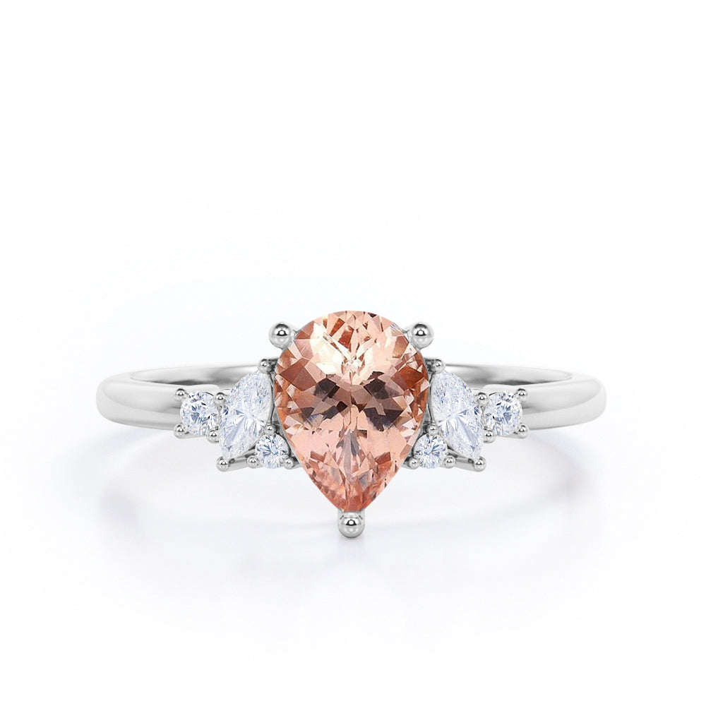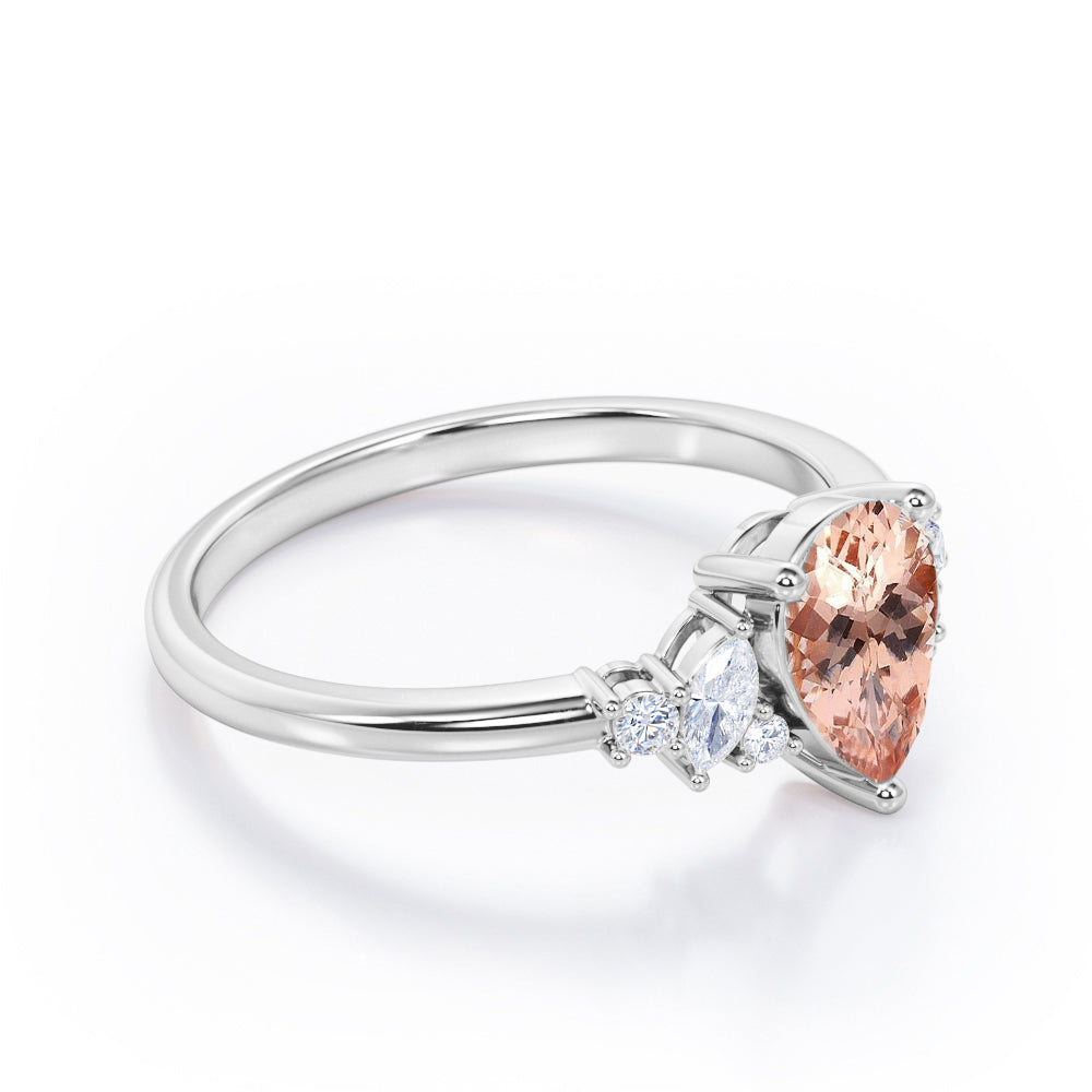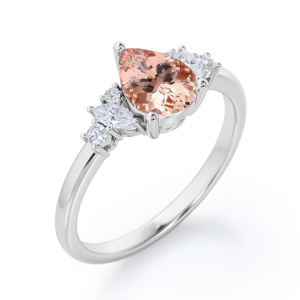 Fashionable 7 Stones 0.6 carat Pear Morganite and Diamond Engagement Ring in White Gold