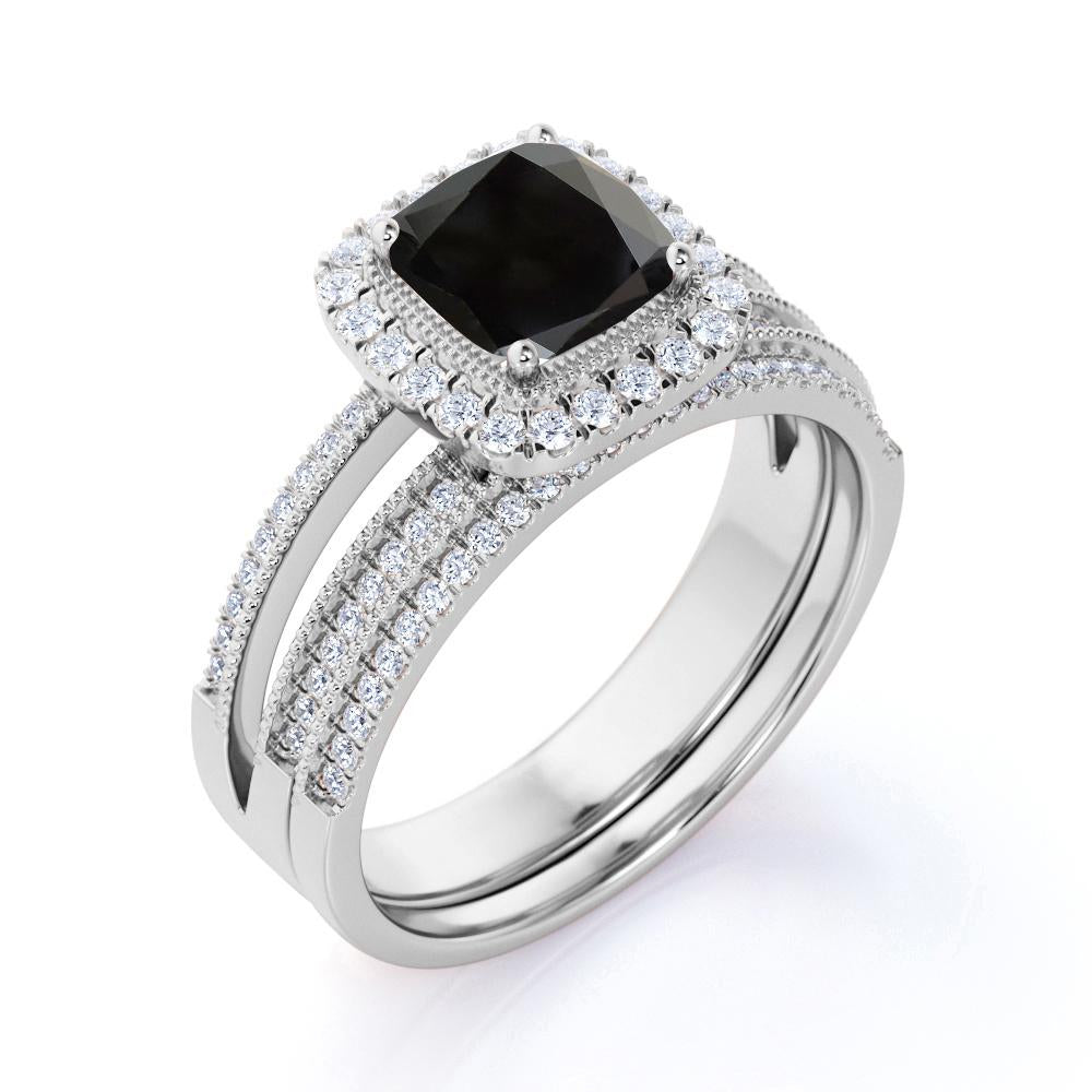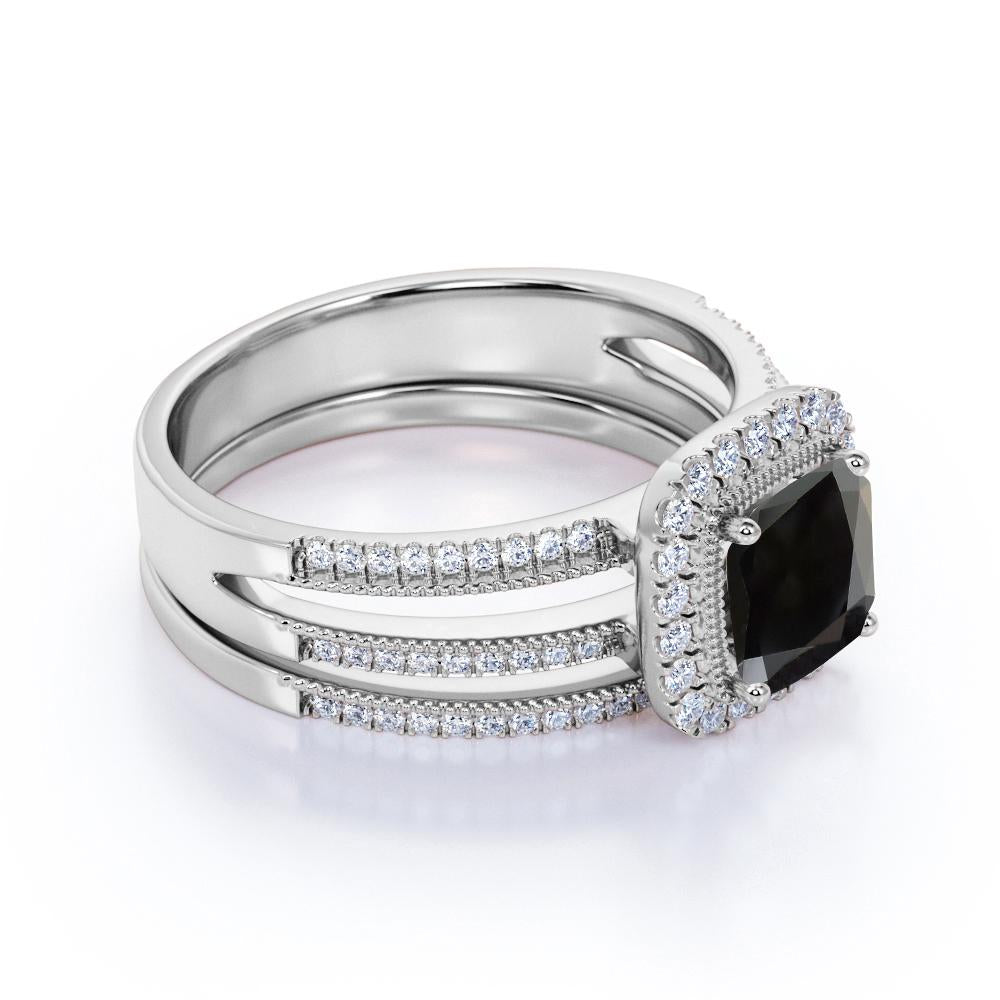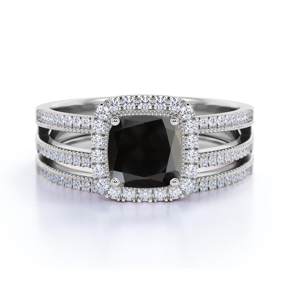 2 ct Cushion Lab Black Diamond Split Shank Bridal Set