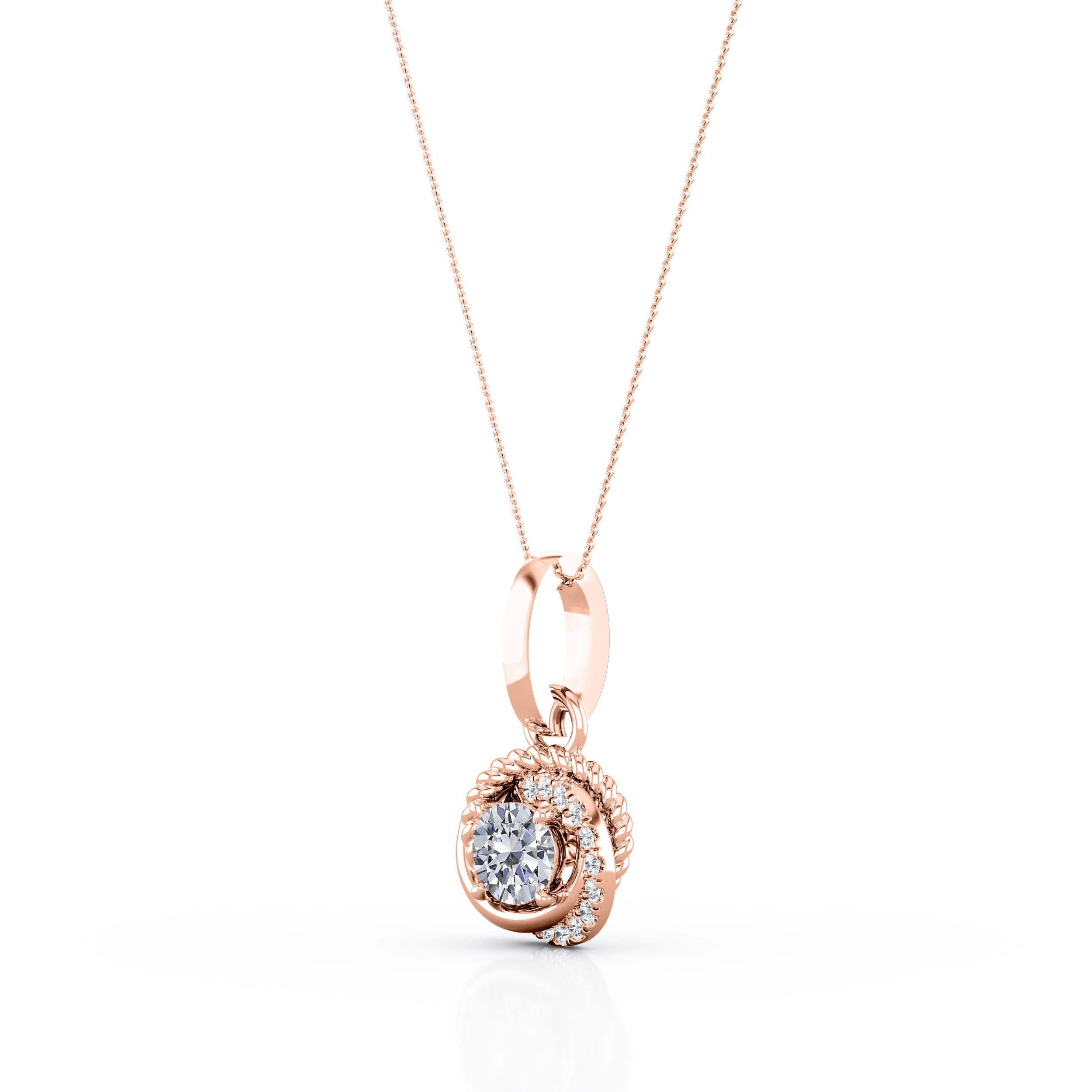 Filigree Crossover 0.60 Carat Round Cut Certified Moissanite and Diamond Forever Pave Stud Pendant Necklace in Rose Gold