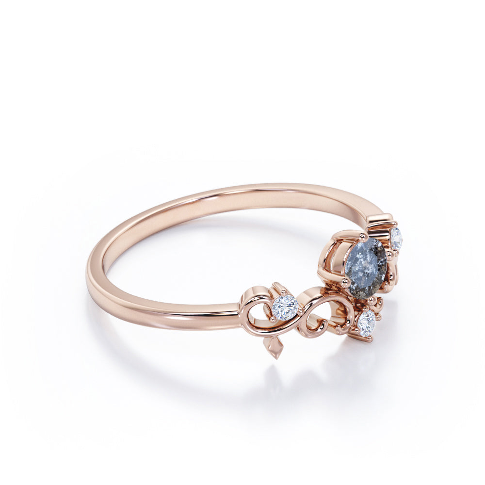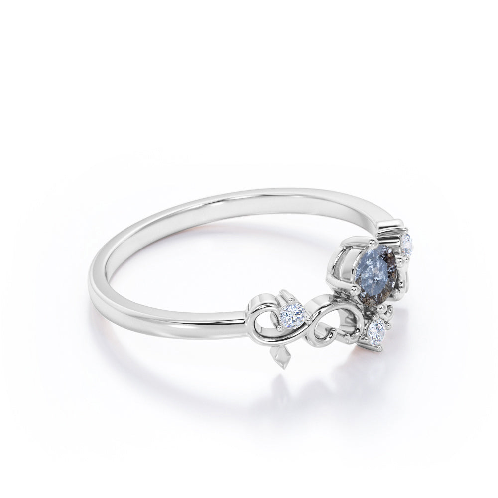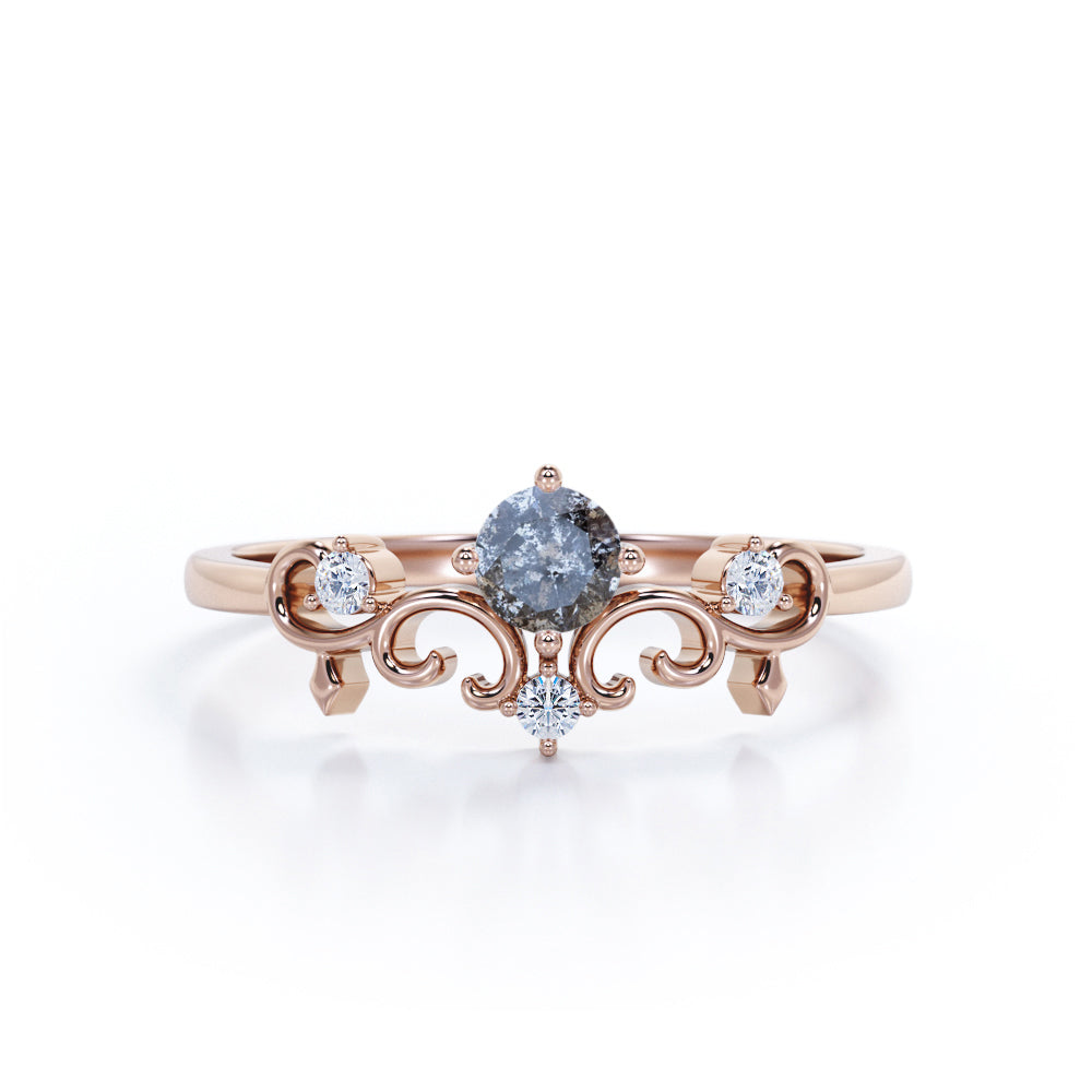 Filigree Solitaire 0.60 Carat Round Cut Fancy Dark Grey Salt and Pepper Diamond Unique Engagement Ring