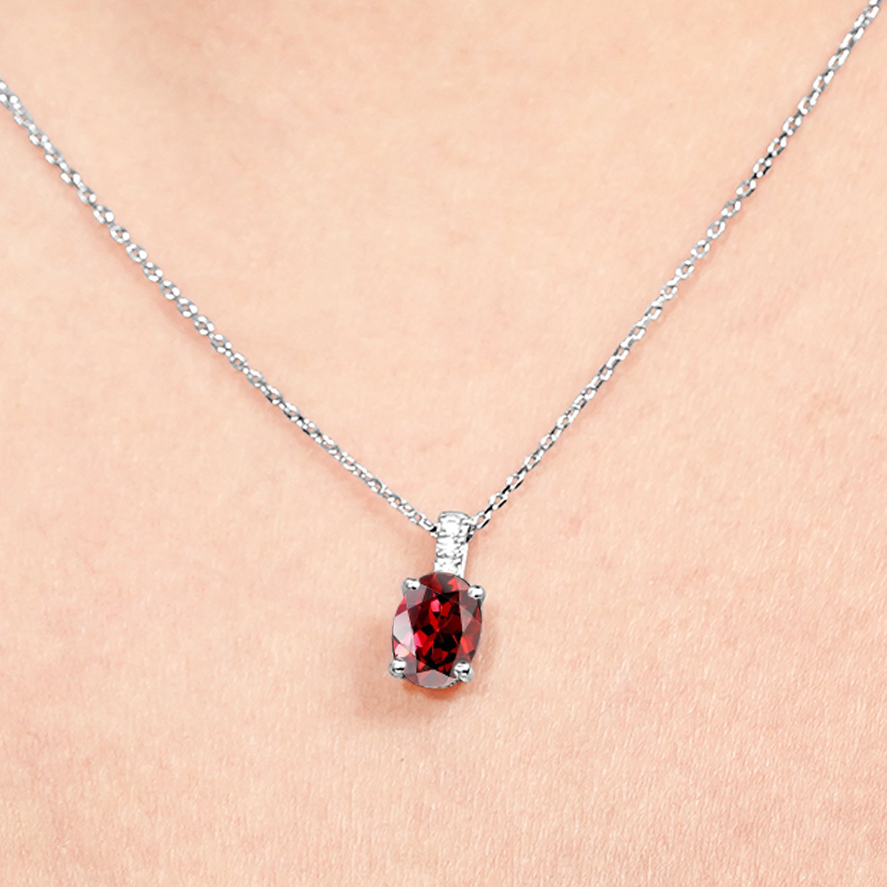 Flawless 1.25 Carat Oval Cut - Garnet - January Birthstone Pendant Necklace for Women in 18K White Gold over Silver