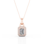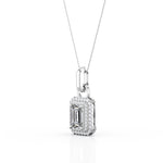 Flawless 4 Prong 1.50 Carat Emerald Cut Certified Moissanite and Diamond Frame Encrusted Pendant Necklace in White Gold