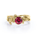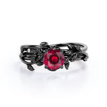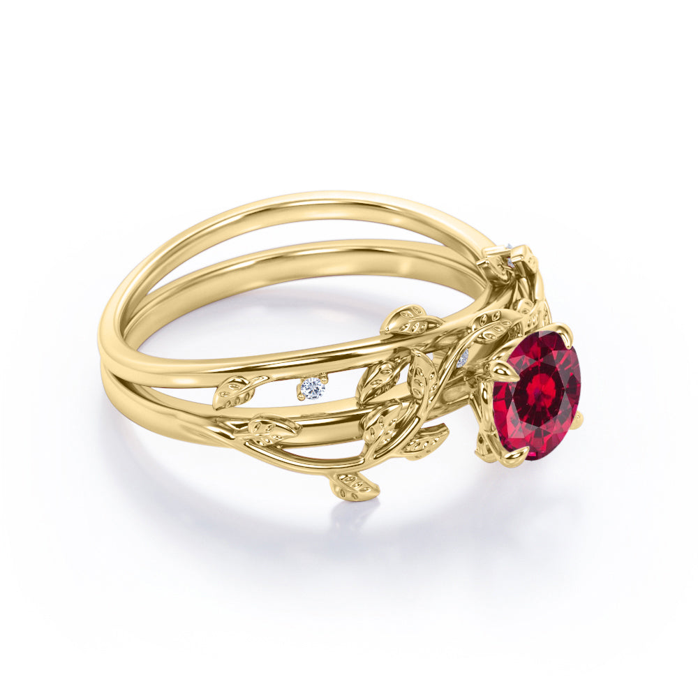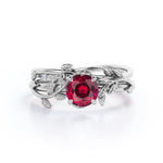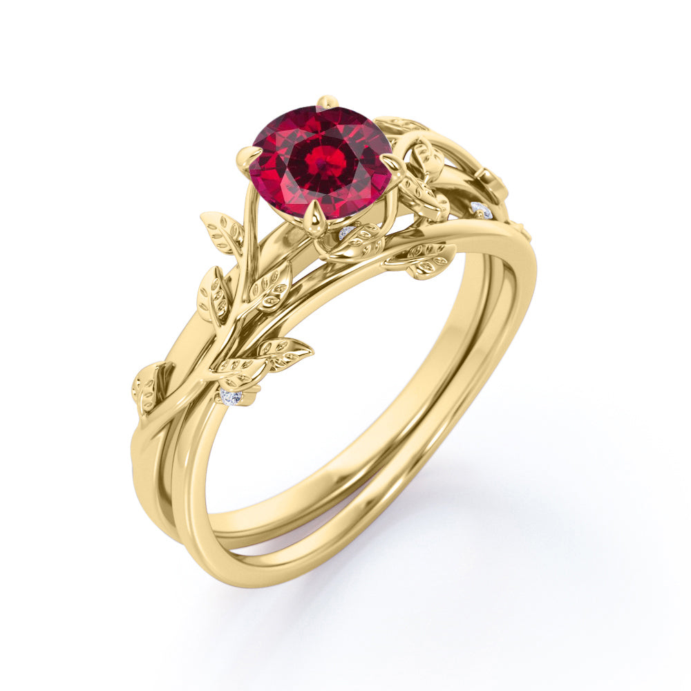 Nature Inspired 1 ct Round Lab-Created Ruby Wedding Set