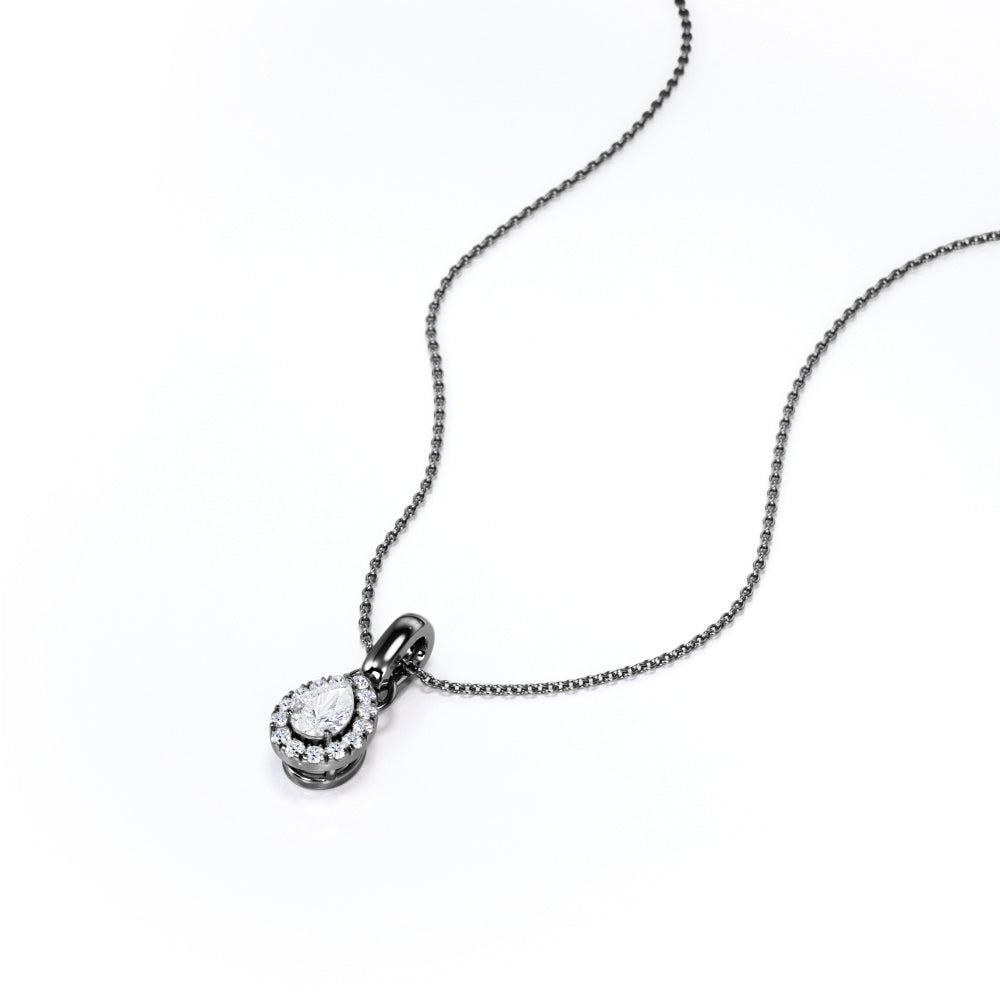 Floating Halo 0.5 CT TDW Teardrop White Diamond Bezel Set Pendant Necklace in Black Gold