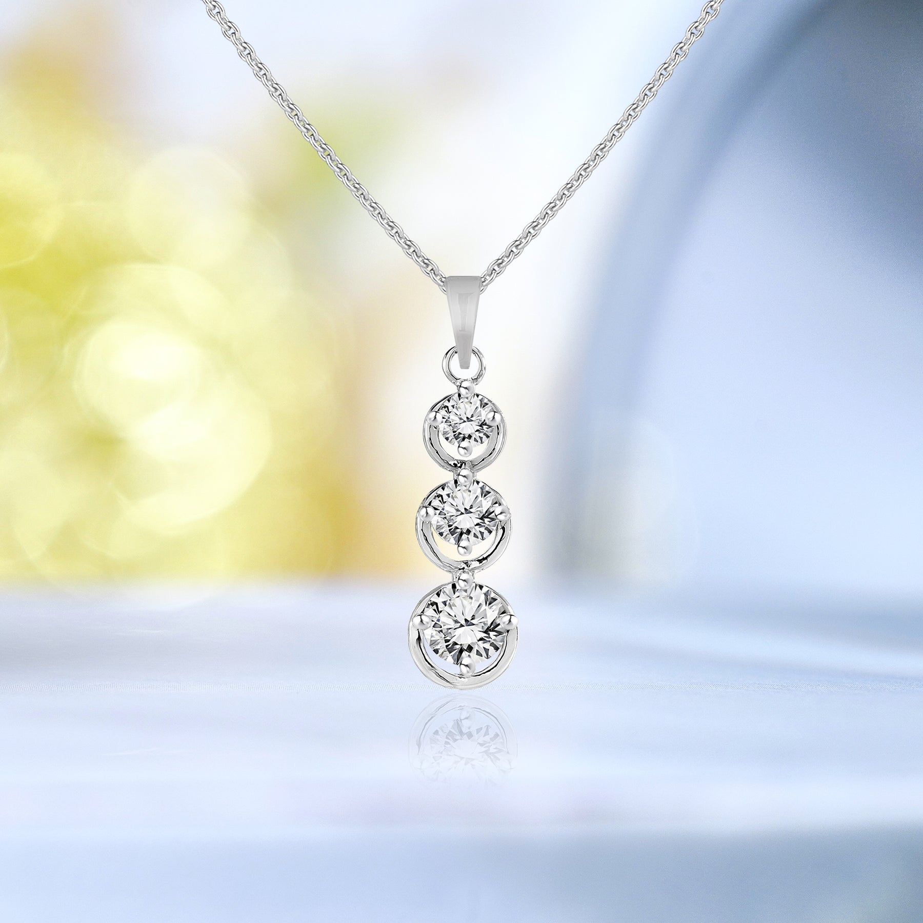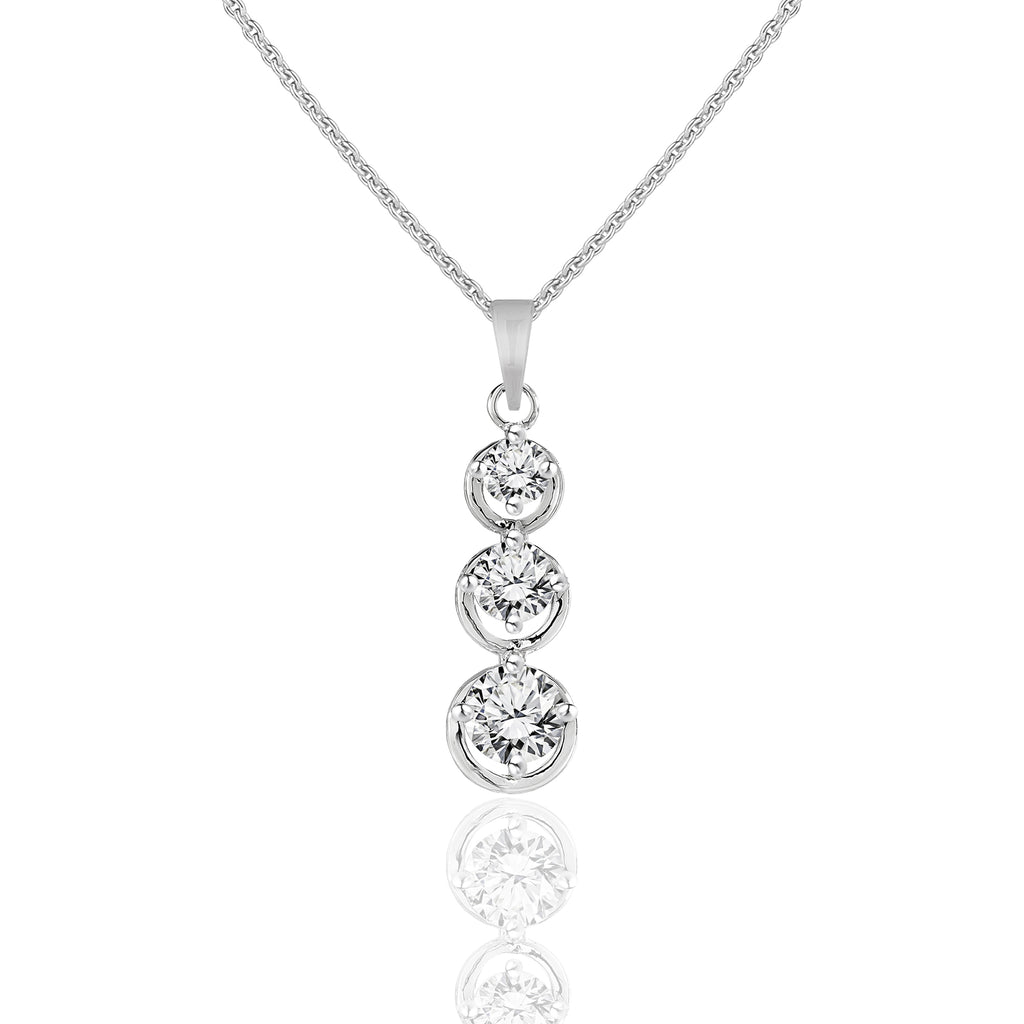 Floating Round Cut Three Stone Drop Pendant Necklace - Latest Fashion Jewelry