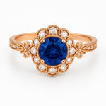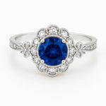 Floral 1.30 Ct Round Blue Sapphire Halo Engagement Ring
