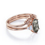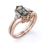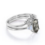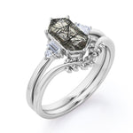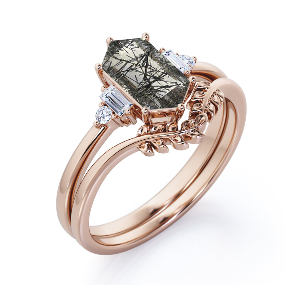 Floral 1.15 ct Hexagon Black Rutilated Quartz Five Stone Bridal Set