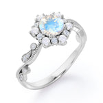 Floral Halo 0.7 carat Round Moonstone and Diamond Engagement Ring in White Gold