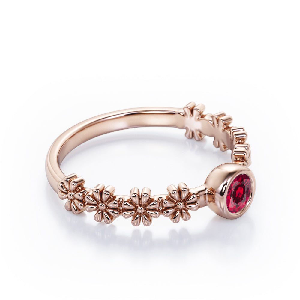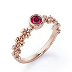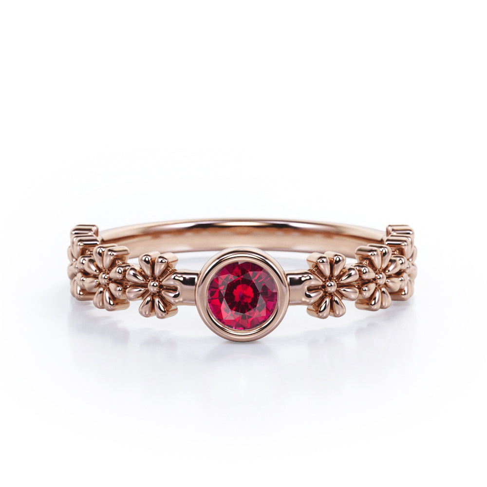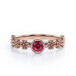 Flower Field 0.5 carat Round Lab Ruby Solitaire Nature-Inspired ring in Rose Gold