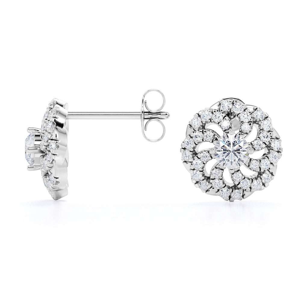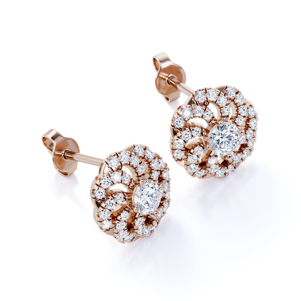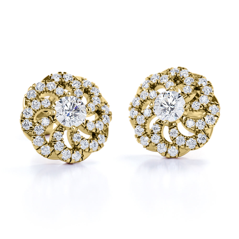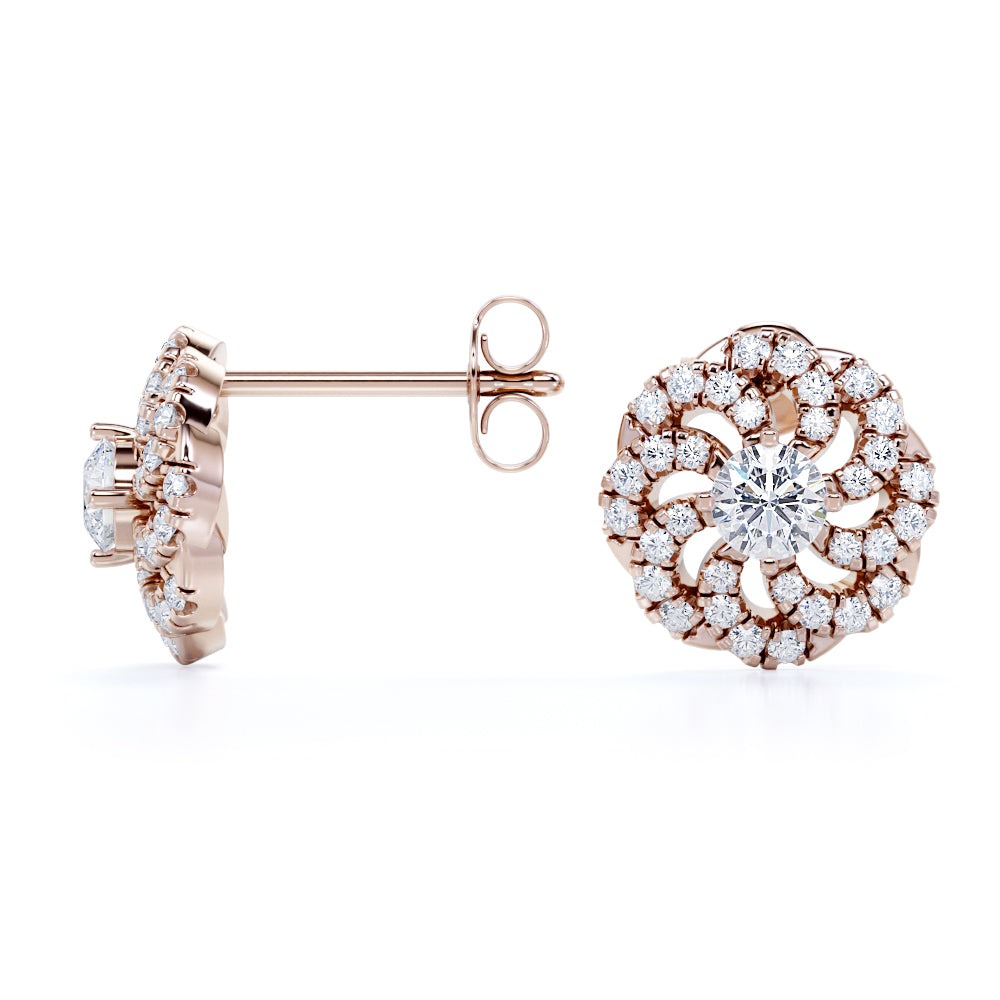 Flower Floating 1.25 Carat Round Certified Moissanite and Diamond French Pave Stud Earrings in Black Gold