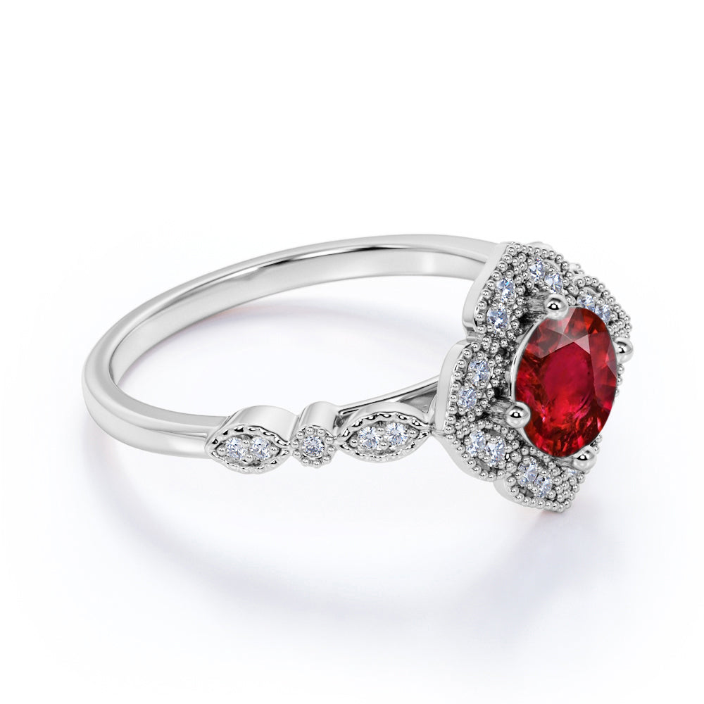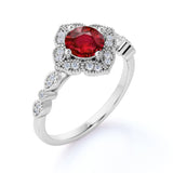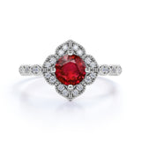 Flower 1.50 ct Round Lab-Created Ruby Vintage Engagement Ring