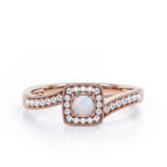 With this Flush-Prong Halo 1.25 Carat Round Cut Opal and diamond Milgrain-Edged Pave Channel Engagement Ring in White Gold, you can begin the most romantic chapter of your life. Handcrafted with care into a wonderful round cut by our most talented jewelers, this beautiful Opal ring for women consists of a 1 carat round cut Opal in the center and is enhanced with diamond sparkling side stones. For those looking for something a little out of the ordinary, this cheap real Opal ring is an excellent choice. Known for its adularescence, this gem engagement ring is magnificent in its glory and luminous shine and will be an unmistakable addition to any jewelry collection. This cheap Opal engagement ring is stunning and inexpensive, thanks to its reasonable price. If you are looking for a Opal ring for any special event, such as a birthday, an engagement, or a marriage proposal, this cheap wedding ring a great choice. Additionally, this Opal ring for women can be customized, either in rose gold, white gold, black gold, or yellow gold, upon customer request. Let's show her how much you care by giving her this affordable Opal ring, and she will never regret it.