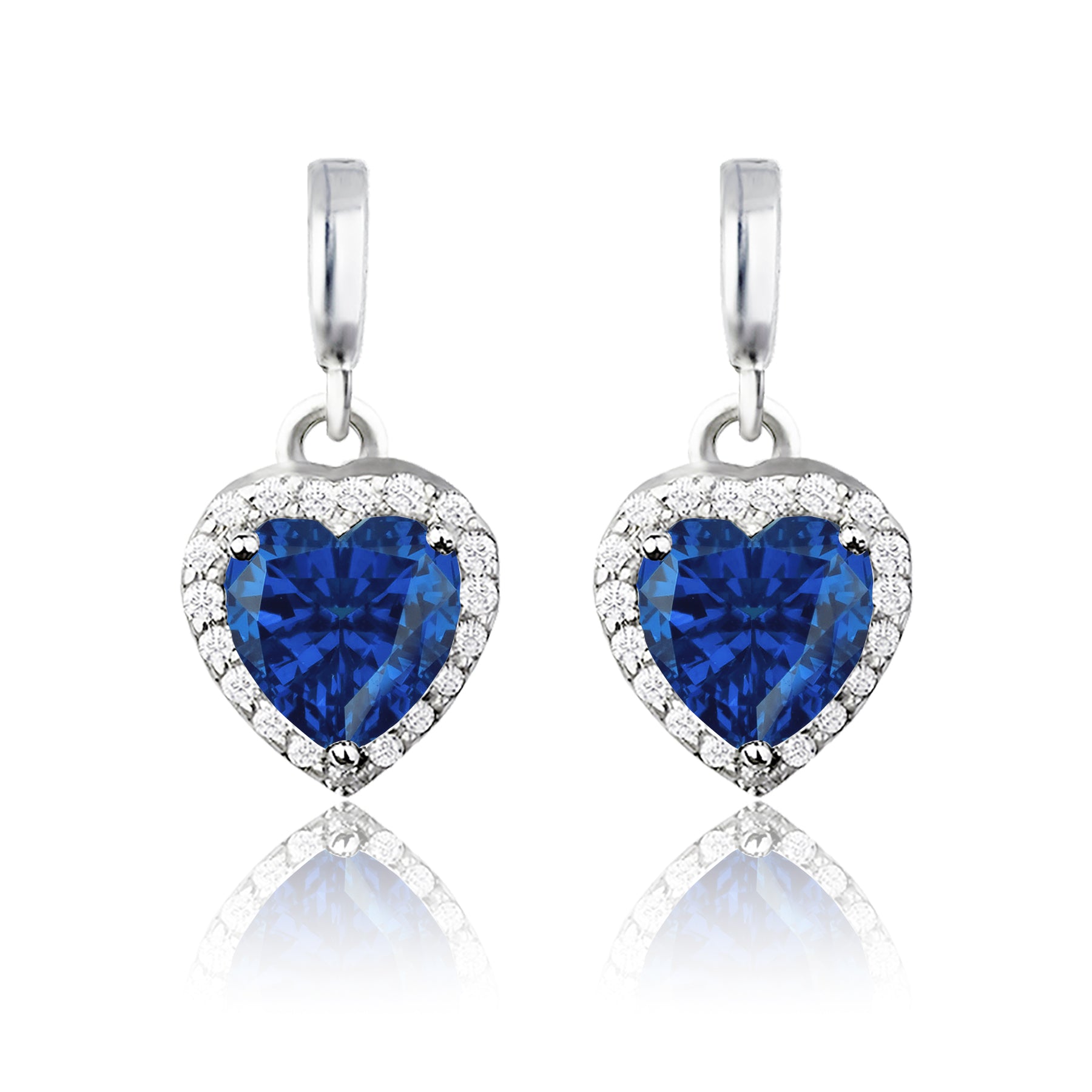 Start the greatest love story of your life with these Forever Heart 1.25 carat - Blue Sapphire - September Birthstone Earrings in 18K White Gold Plating over Silver. Skillfully hand-cut into a nice heart cut by our experts in lapidary, these appealing cubic zirconia earrings are made up of 1.25 carat cubic zirconia on solid white gold over silver. Special and non-traditional, these dangle earrings are perfect for those who would love to express their charisma and uniqueness. With its glory and clarity, these earrings with cubic zirconia gemstones will enhance happiness and attract positive vibes. These cubic zirconia screwback earrings are beautiful and accessible since it is available at an affordable price. Considered as a symbol of timeless love and affection for your lover, these dangle earrings can be a perfect gift for any occasion like Valentine's day, mother's day or anniversary. Let’s impress her with these cubic zirconia dangle earrings, and, surely, she will not regret it.|Total Carat Weight (All Stones): 1.25 Carat|Main Gemstone Type: Cubic Zirconia|Main Gemstone Shape: Heart Cut|Metal Type: 18K White Gold Plating over Silver|Jewelry Design Type: Dangle Earrings|Birthstone Month: September|Condition: New