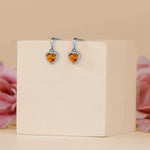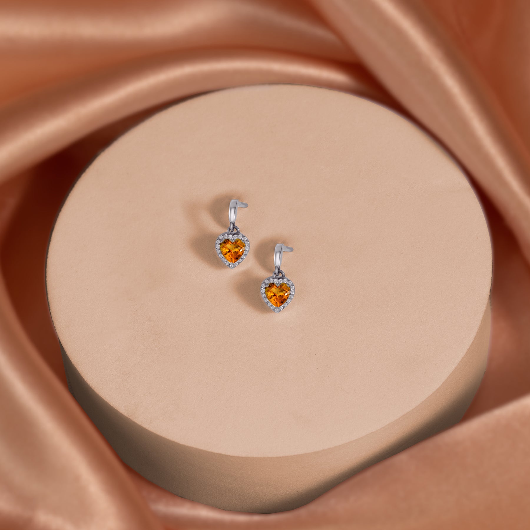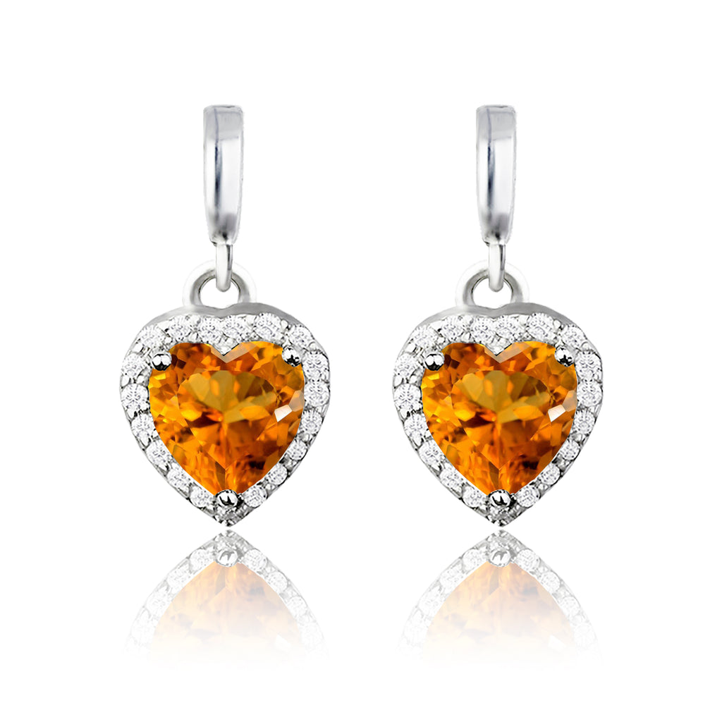 Start the greatest love story of your life with these Forever Heart 1.25 carat - Citrine - November Birthstone Earrings in 18K White Gold Plating over Silver. Skillfully hand-cut into a nice heart cut by our experts in lapidary, these appealing cubic zirconia earrings are made up of 1.25 carat cubic zirconia on solid white gold over silver. Special and non-traditional, these dangle earrings are perfect for those who would love to express their charisma and uniqueness. With its glory and clarity, these earrings with cubic zirconia gemstones will enhance happiness and attract positive vibes. These cubic zirconia screwback earrings are beautiful and accessible since it is available at an affordable price. Considered as a symbol of timeless love and affection for your lover, these dangle earrings can be a perfect gift for any occasion like Valentine's day, mother's day or anniversary. Let’s impress her with these cubic zirconia dangle earrings, and, surely, she will not regret it.|Total Carat Weight (All Stones): 1.25 Carat|Main Gemstone Type: Cubic Zirconia|Main Gemstone Shape: Heart Cut|Metal Type: 18K White Gold Plating over Silver|Jewelry Design Type: Dangle Earrings|Birthstone Month: November|Condition: New