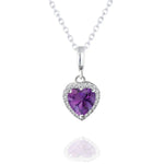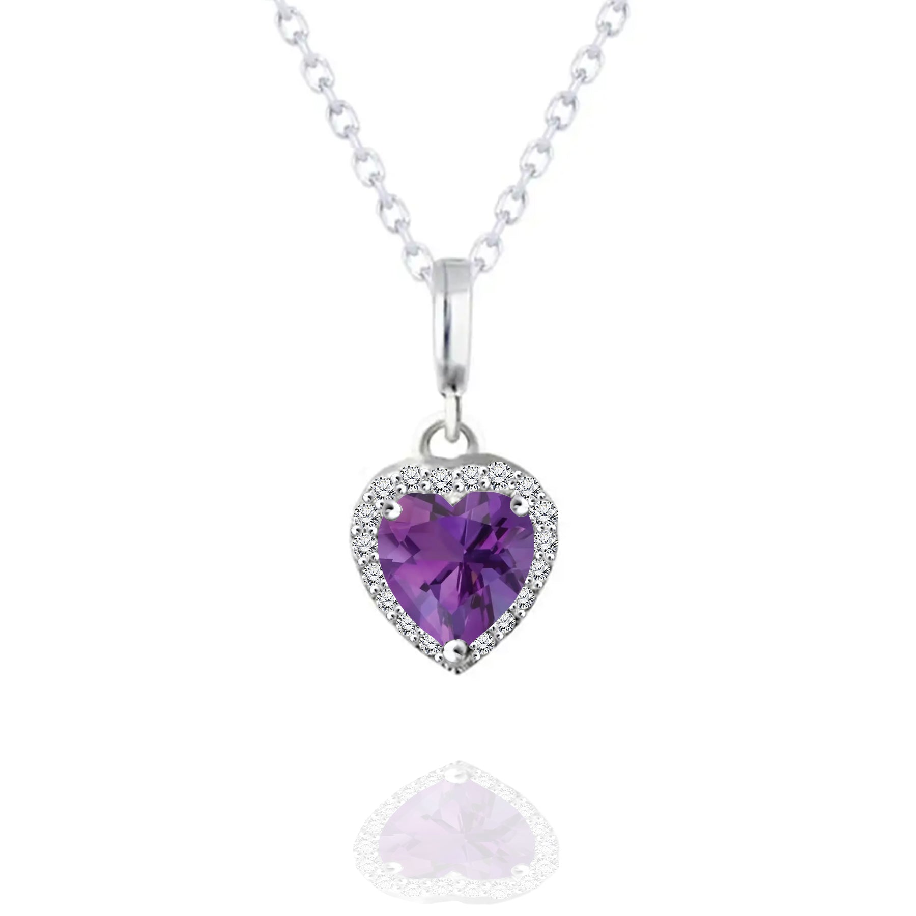 Forever Heart 1.5 Carat - Amethyst - February Birthstone Pendant Necklace in 18K White Gold Plating over Silver