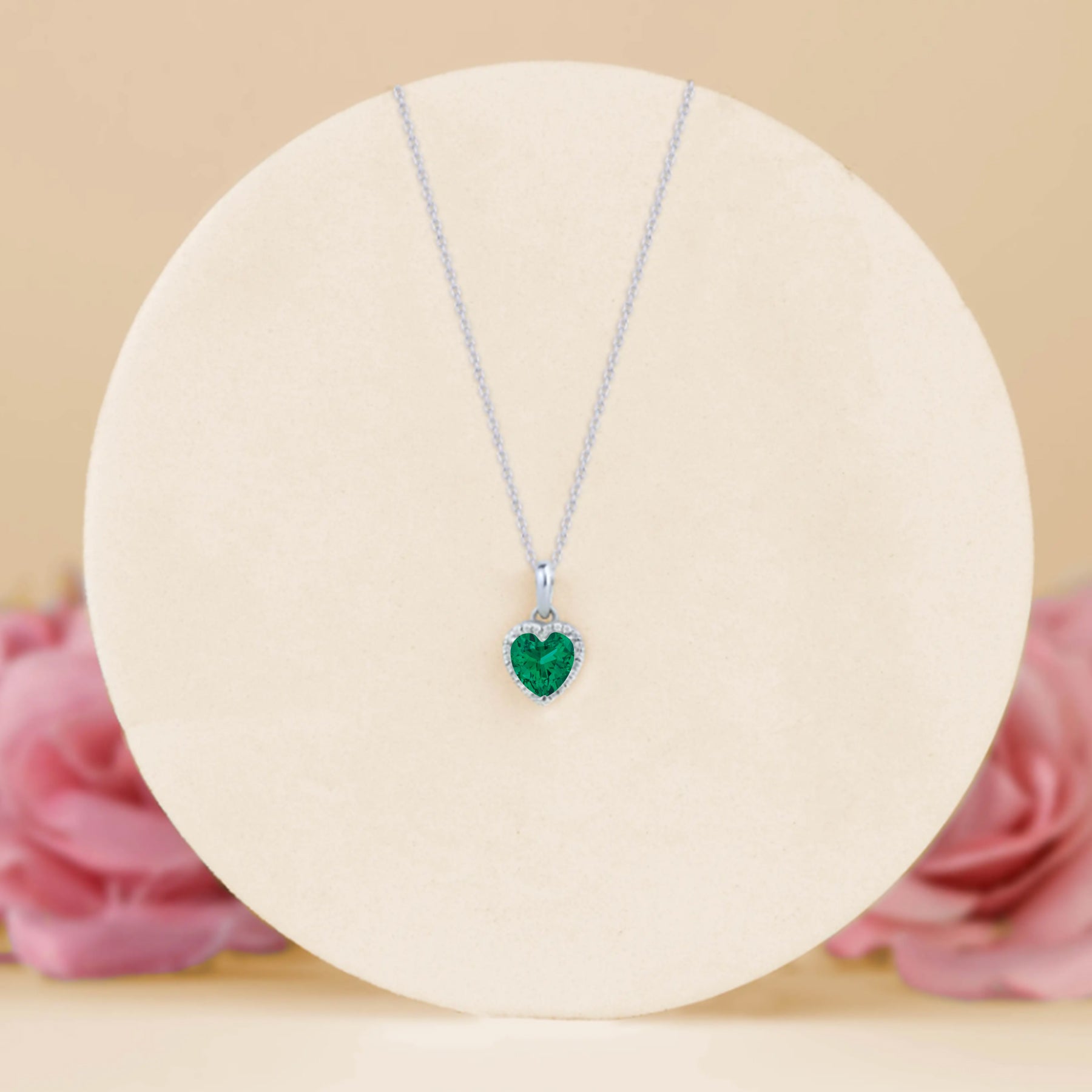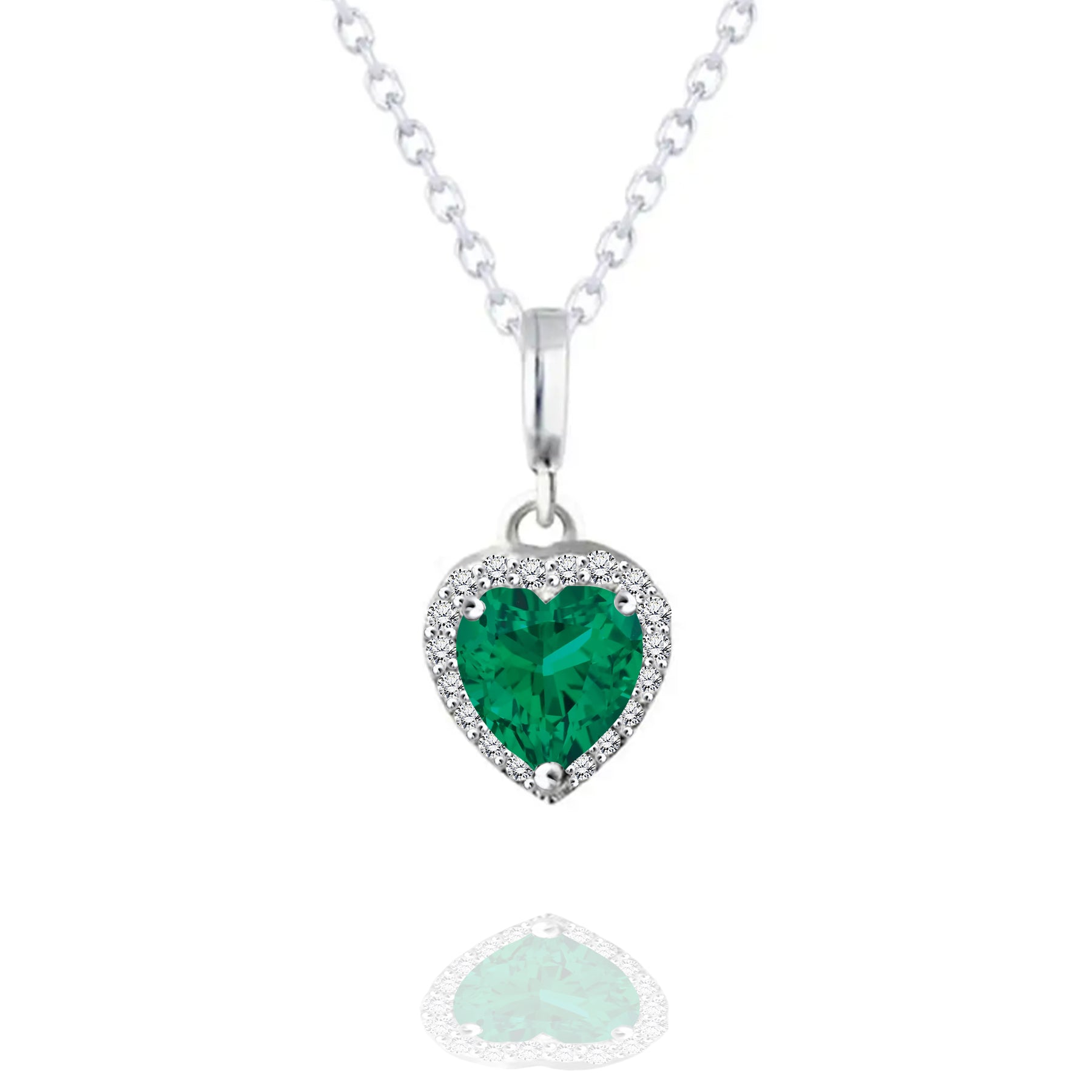 Forever Heart 1.5 Carat - Emerald - May Birthstone Pendant Necklace in 18K White Gold Plating over Silver