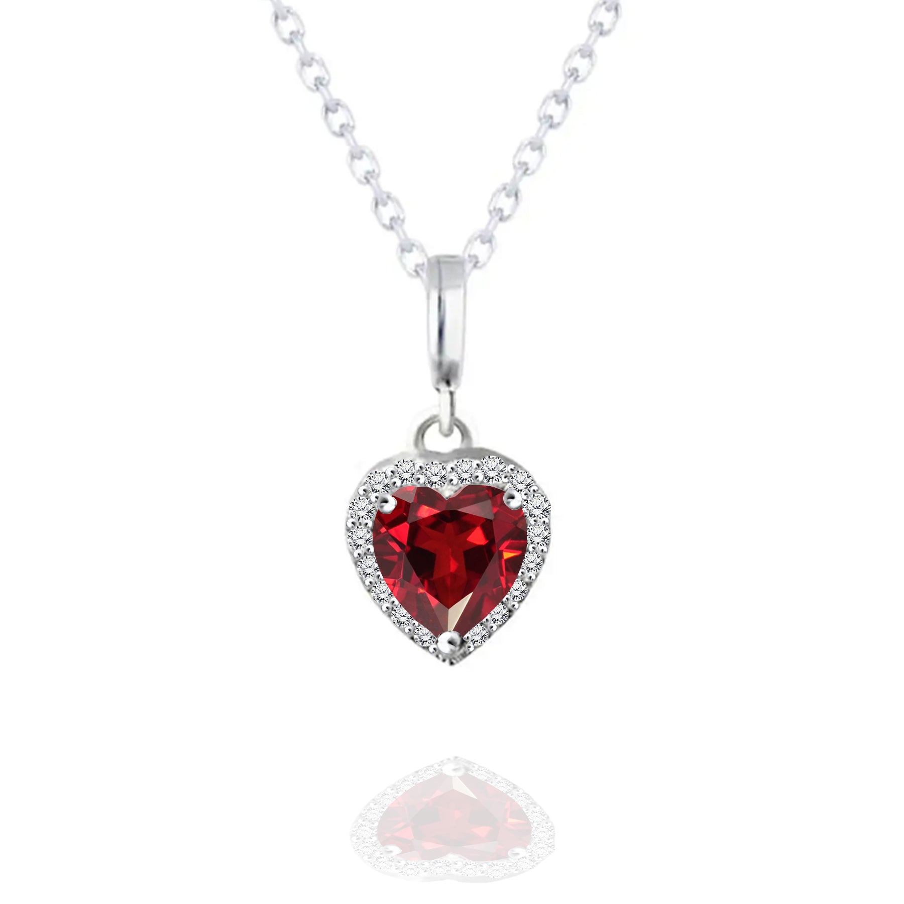 Forever Heart 1.5 Carat - Garnet - January Birthstone Pendant Necklace in 18K White Gold Plating over Silver