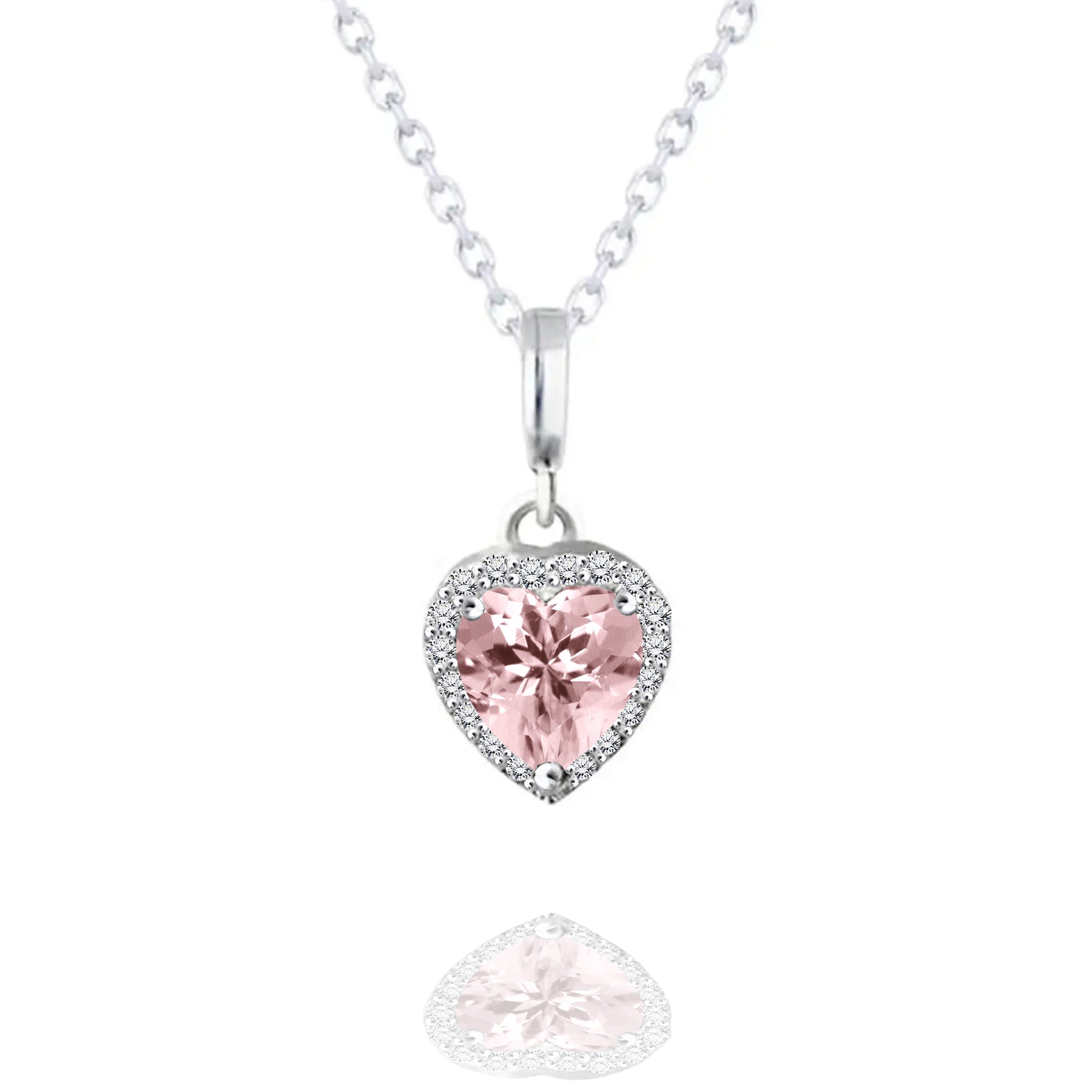 Forever Heart 1.5 Carat - Pink Tourmaline - October Birthstone Pendant Necklace in 18K White Gold Plating over Silver