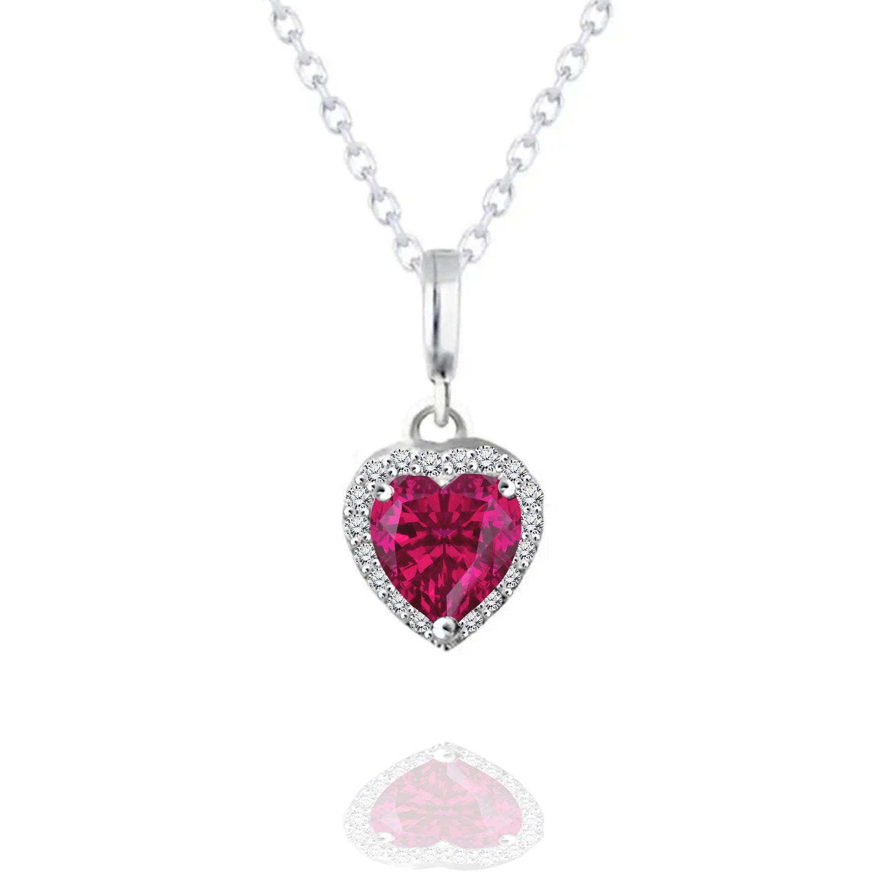 Forever Heart 1.5 Carat - Ruby - July Birthstone Pendant Necklace in 18K White Gold Plating over Silver