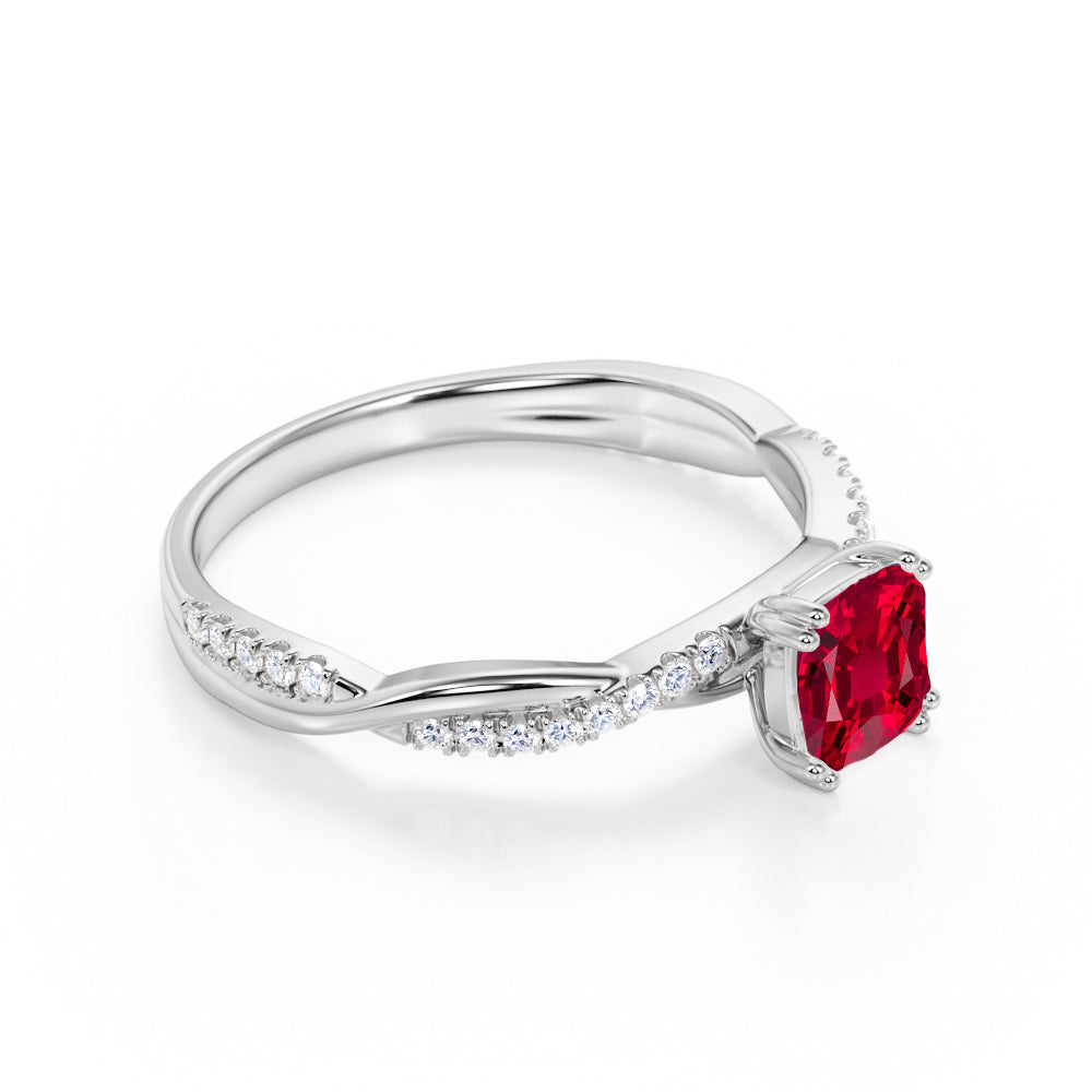 Four Claw 1.25 Carat Cushion Cut Lab Ruby and Diamond Engagement Ring in White Gold