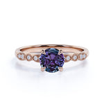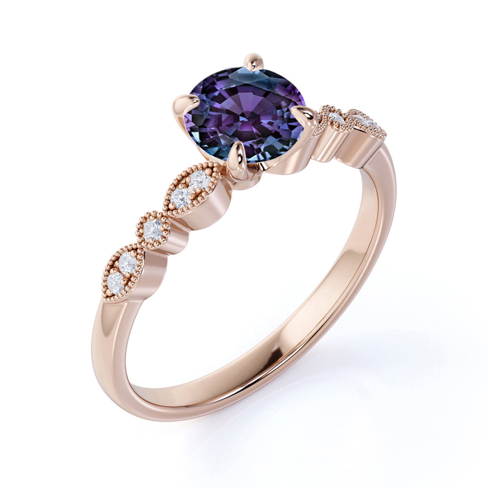 Four Claw 1.25 Carat Round Cut Lab Grown Alexandrite and Diamond Art Deco Solitaire Engagement Ring