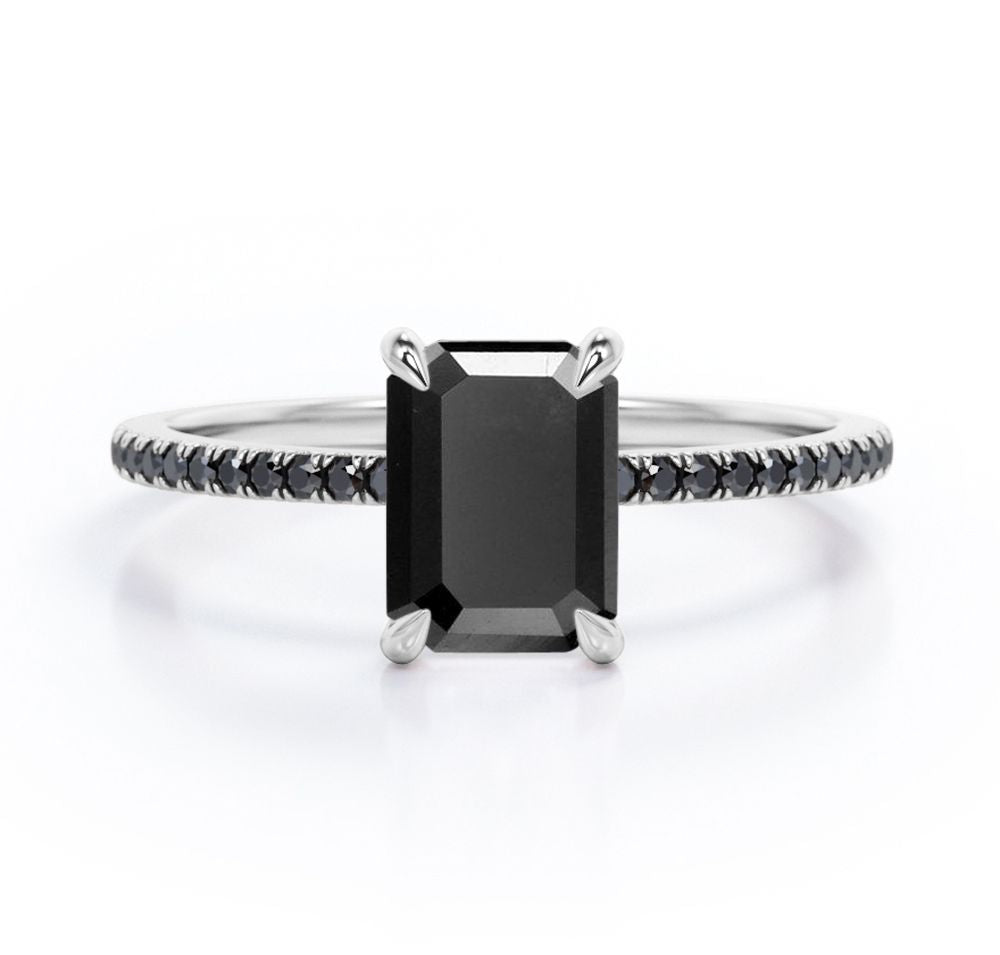 1.25 ct Emerald Lab Black Diamond Pave Engagement Ring
