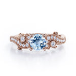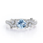 Four Prong 1.35 Carat Round Cut Aquamarine and Diamond Vintage Milgrain Engagement Ring In White Gold