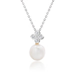 Genuine 8mm Pearl Necklace Pendant and Moissanite Magnolia for Women in 18K White Gold over Silver