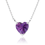 Gorgeous 1 Carat Heart Cut - Amethyst - February Birthstone Pendant Necklace in 18K White Gold Plating over Silver