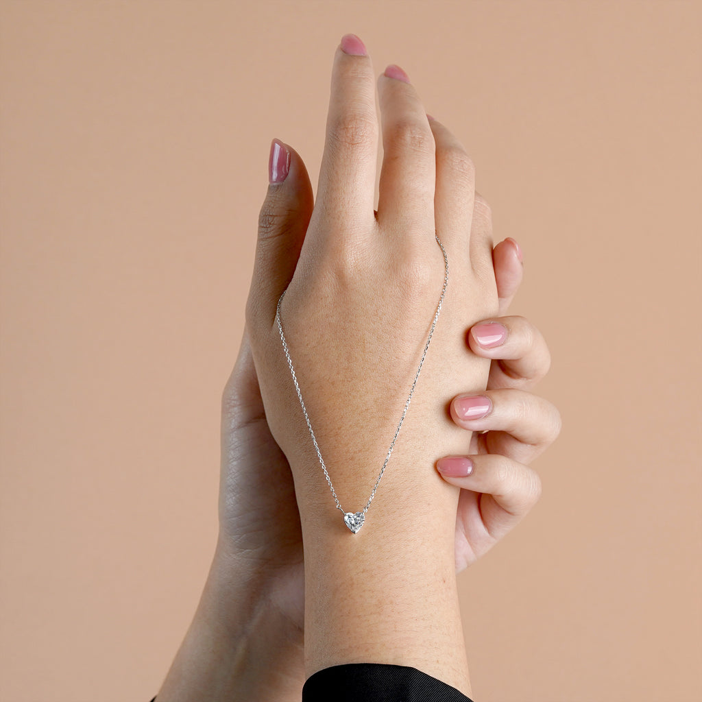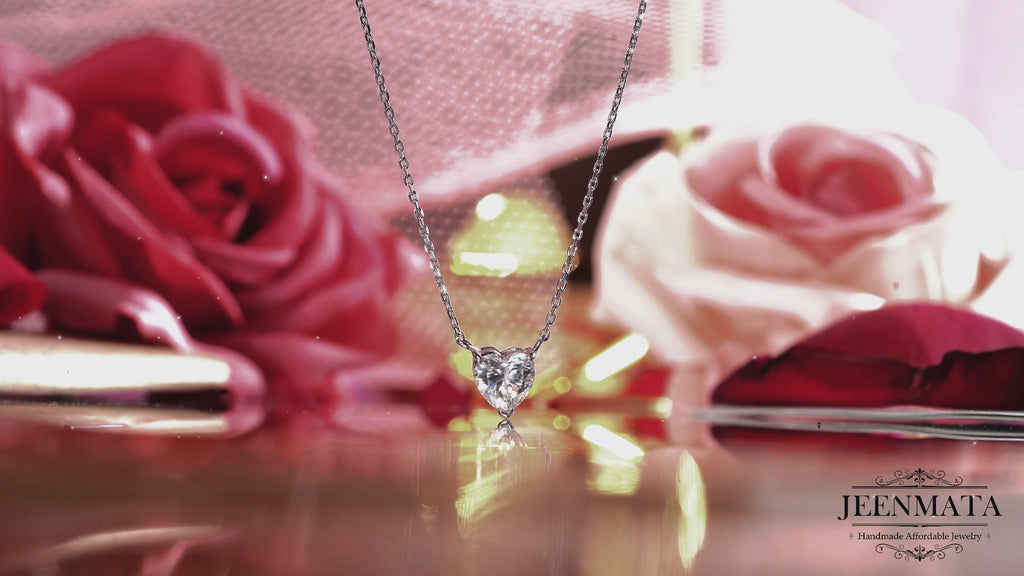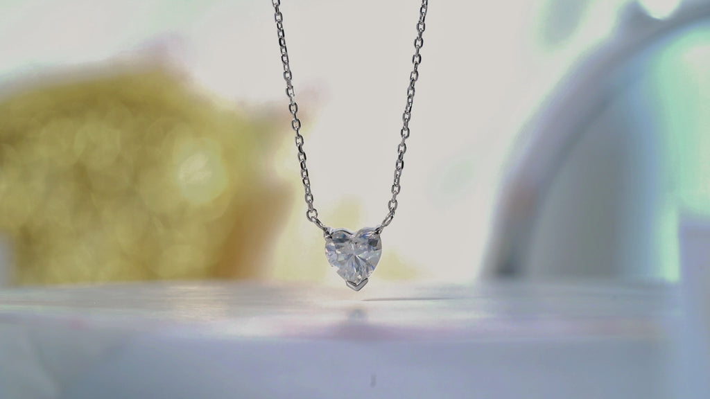 Gorgeous 1 Carat Heart Cut Moissanite Pendant Necklace in 18K White Gold Plating over Silver