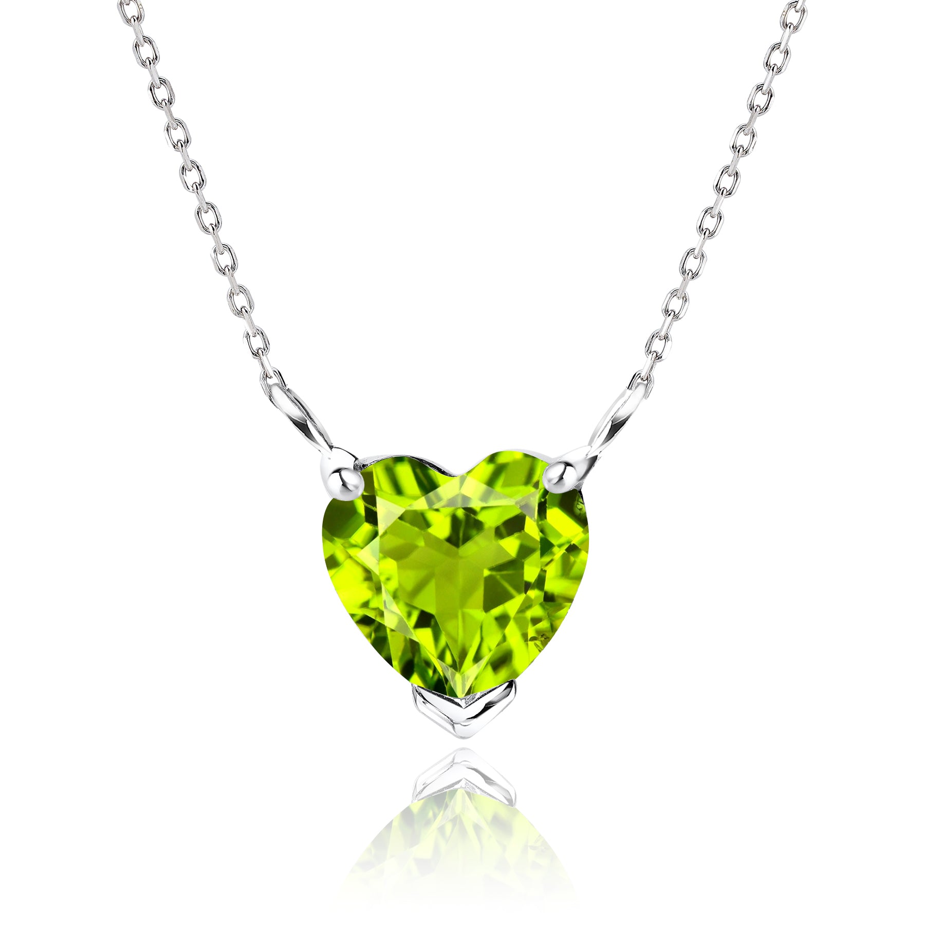 Gorgeous 1 Carat Heart Cut - Peridot - August Birthstone Pendant Necklace in 18K White Gold Plating over Silver
