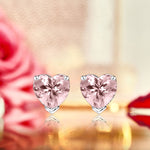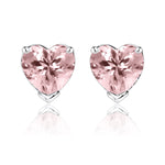 Gorgeous 1 Carat Heart Cut - Pink Tourmaline - October Birthstone Solitaire Stud Earrings in 18K White Gold Plating over Silver
