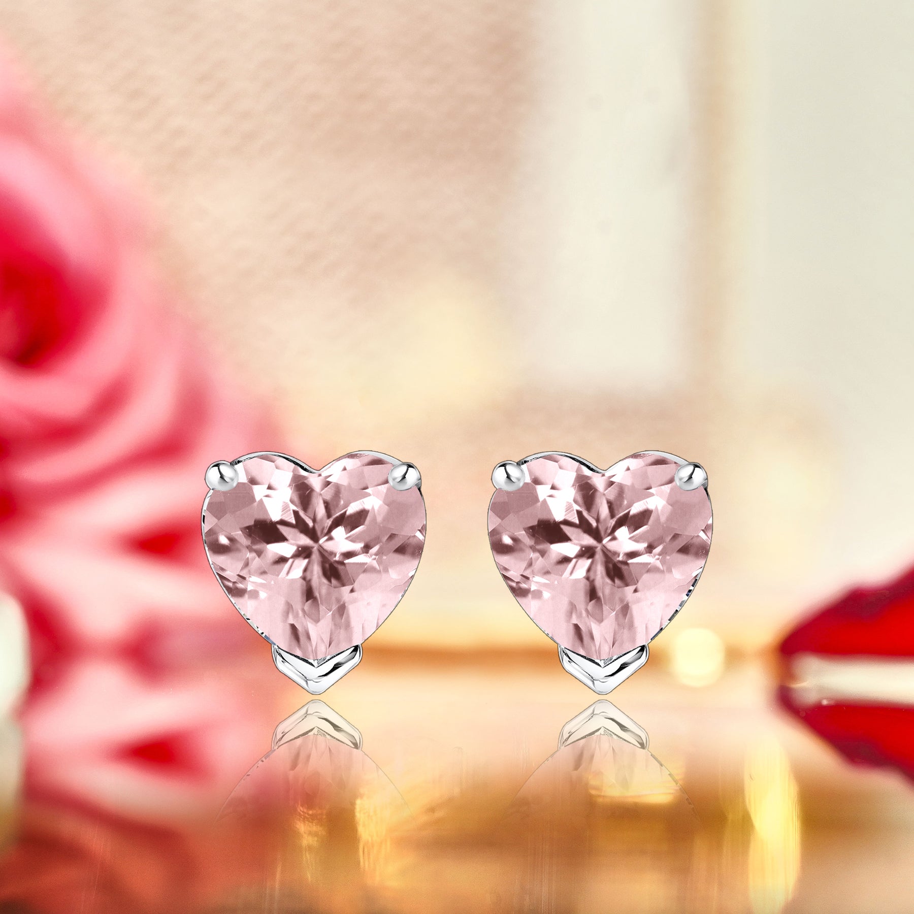Start the greatest love story of your life with this Gorgeous 1 Carat Heart Cut Cubic Zirconia Solitaire Stud Earrings in 18K White Gold Plating over Silver. Professionally handcrafted into a fine heart cut by our experts in lapidary, this alluring Solitaire Stud Earrings with a Cubic Zirconia stone comprise 1 carat Cubic Zirconia on solid white gold plating over silver. Distinctive and extraordinary, this Solitaire Stud Earrings with a Cubic Zirconia stone are well-suited for those who are not quite into normal lifestyle. With naked eyes Cubic Zirconias look, shine and feel exactly like diamonds. Reflective properties of this Solitaire Stud Earrings with a Cubic Zirconia stone will enhance happiness and attract positive vibes. This Cubic Zirconia solitaire Stud Earrings are beautiful and accessible since they are available at an affordable price. Cubic Zirconias are the most popular alternative gemstone for diamonds while being at lower and more affordable price. Considered as a symbol of timeless love and affection for your lover, this Cubic Zirconia solitaire earrings can be a good choice for any special occasion, i.e. a birthday, an engagement or marriage gift, a Valentines' day gift, etc. In regards to its hardness, Cubic Zirconia is almost as hard as diamond which means that it is notably durable. Let’s impress her with this Cubic Zirconia solitaire earrings and, surely, she will not regret it.|Total Carat Weight (All Stones): 1 Carat|Gemstone Type: Cubic Zirconia|Gemstone Shape: Heart Cut|Gemstone Color: Pink|Metal Type: 18K White Gold Plating Over Silver|Birthstone Month: April|Condition: New