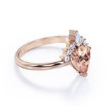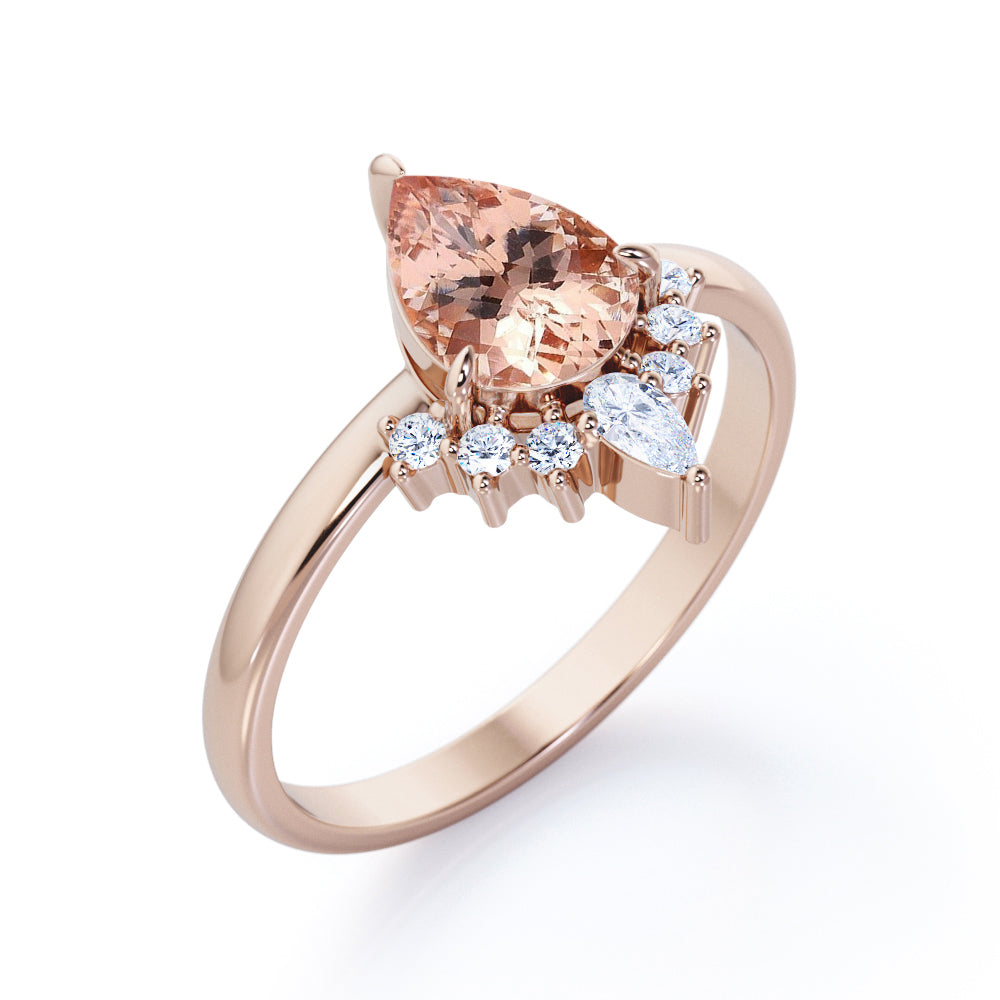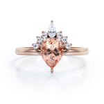 Half-Crown Halo 0.55 carat Pear Morganite and Moissanite Engagement Ring in Rose Gold