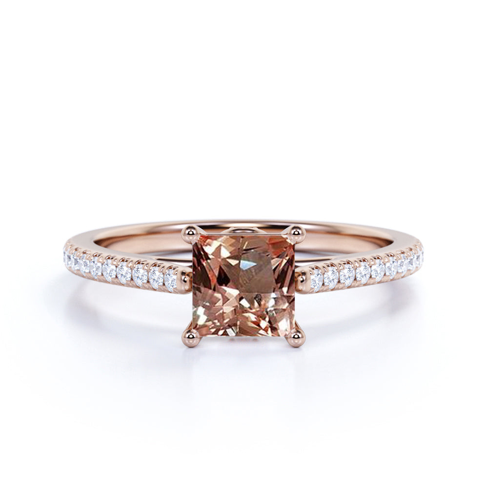 - The Morganite and Diamond Engagement Ring can be made in either 10k, 14k, or 18k real solid gold and in any color between Rose, White or Yellow.