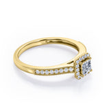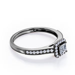 With this Halo Design 1.25 carat Princess Cut Moissanite and diamond Milgrain-Bordered Pave-Channel Engagement Ring in White Gold, your better half will easily stand out from the crowd. Hand-cut with deftness into a lovely shape princess cut by our most talented jewelers, this gorgeous moissanite jewelry integrates 1 carat moissanite in the center with 0.25 carat diamond side stones. Distinct and unusual, this gem engagement ring is an excellent choice. This inexpensive engagement ring will accentuate any outfit the wearer chooses to put on. Beautiful and affordable, this affordable moissanite engagement ring is stunning and inexpensive, thanks to its reasonable price. This moissanite jewelry, the birthstone ring for April, symbolically represents love and dedication, is the best gift you can give to your significant other. Additionally, this natural engagement ring can be customized, either in rose gold, white gold, black gold, or yellow gold, upon customer request. Let's show her how much you care by giving her this moissanite ring for women.