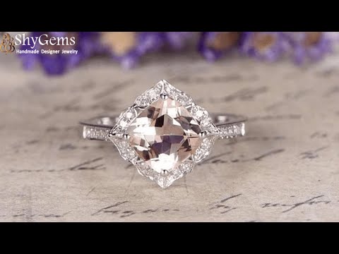 This is a very beautiful handmade Classic Morganite and Diamond Engagement Ring for women. The ring is made with real peach pink morganite, real diamonds and on real gold. The handcrafted engagement ring features 1 carat cushion cut peach pink morganite in the center, surrounded with 0.25 carat of diamonds, for a total carat weight of 1.25 Carats.