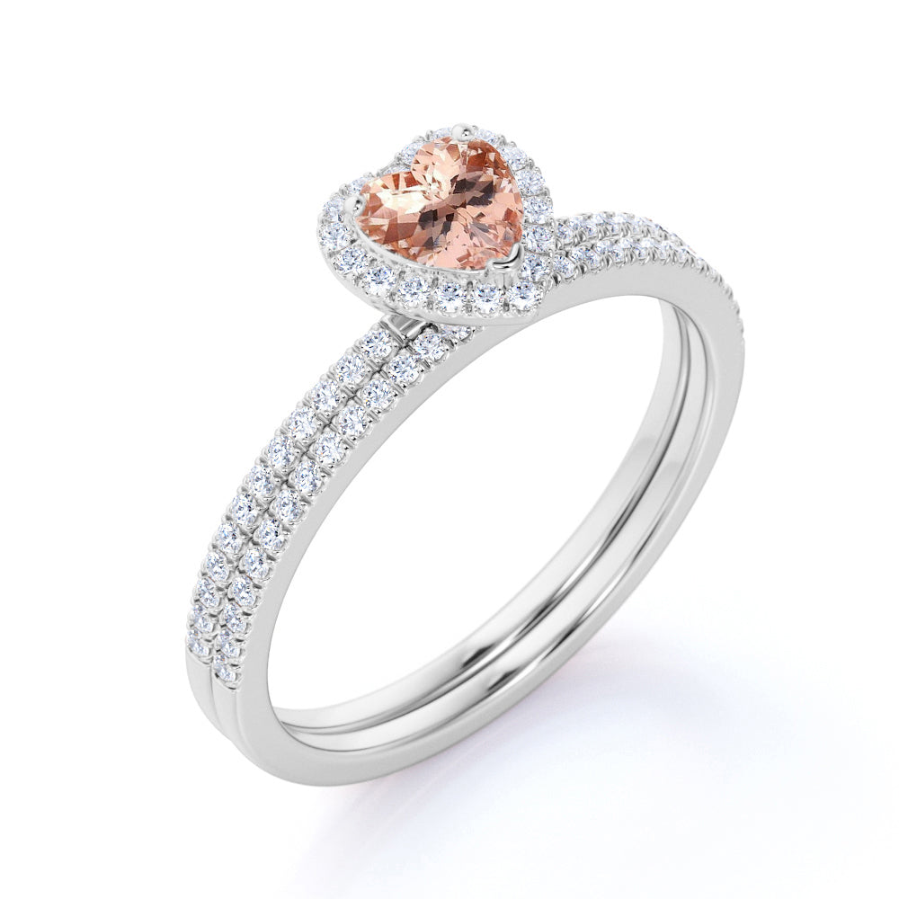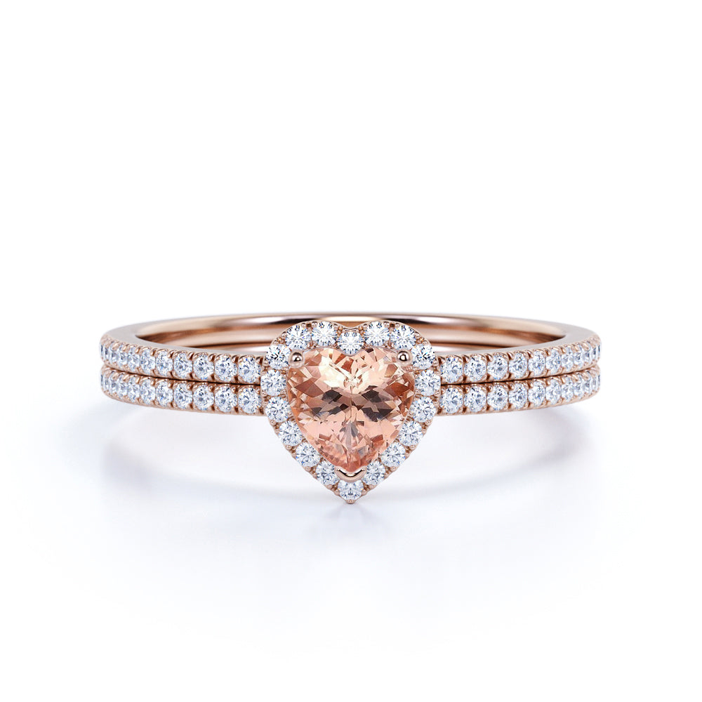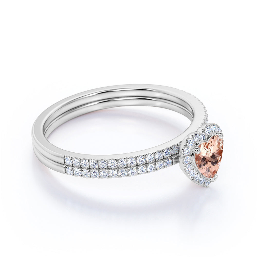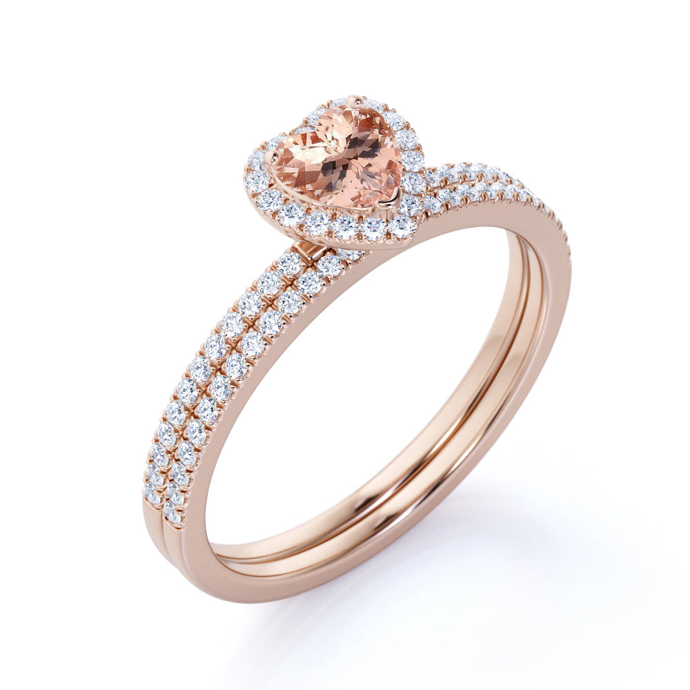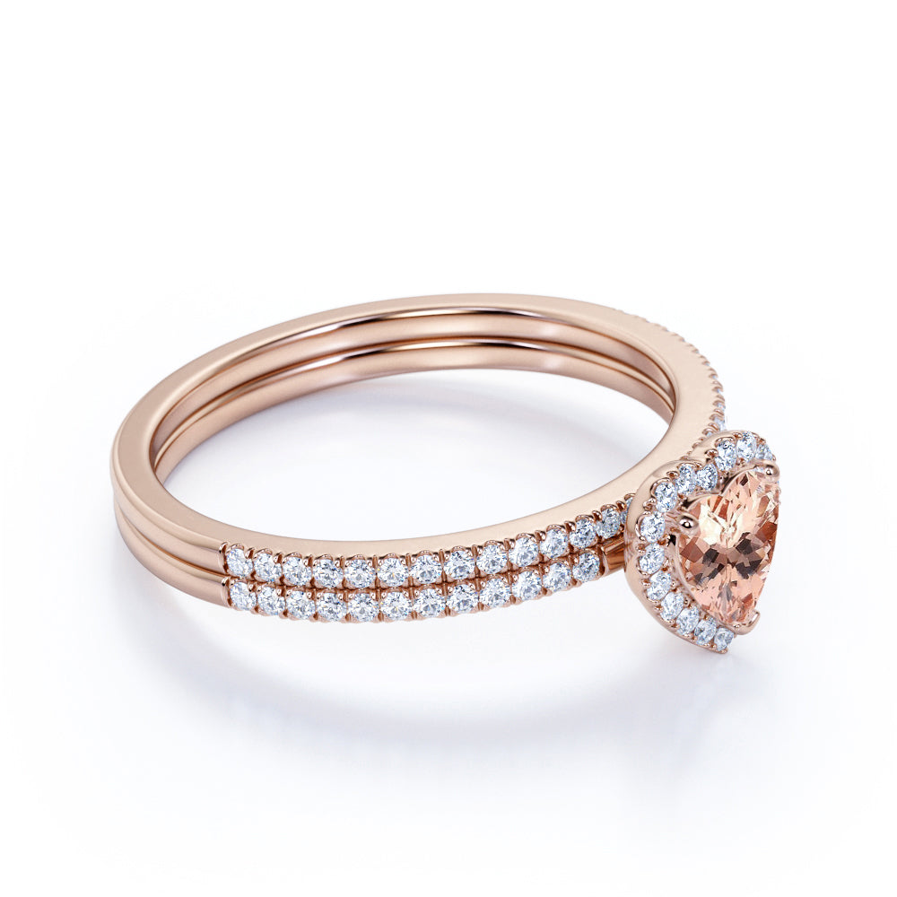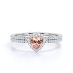 Handmade 1.75 Carat Heart Shape Peach Morganite and Diamond Bridal Set in Rose Gold