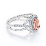 Split Shank 1.50 Carat Emerald Cut Morganite and Diamond Engagement Ring in White Gold