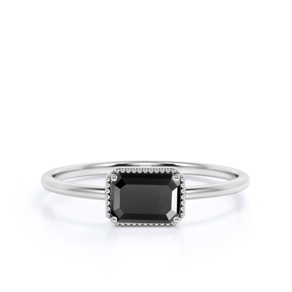 Horizontal 1 Carat Emerald Cut Lab Black Diamond and Modern Solitaire Engagement Ring in White Gold