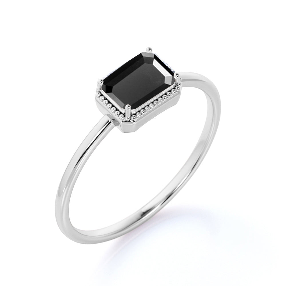 This black diamond is best for engagement ring or proposal ring. The vibrant color of this ring brings life to the fullest. We can also customize this black diamond engagement ring to become an infinity or eternity band which will reflects your love for each other and that love will surely last forever because of this amazing ring. This black diamond ring features an approximately 1 carat emerald cut lab created black diamond.