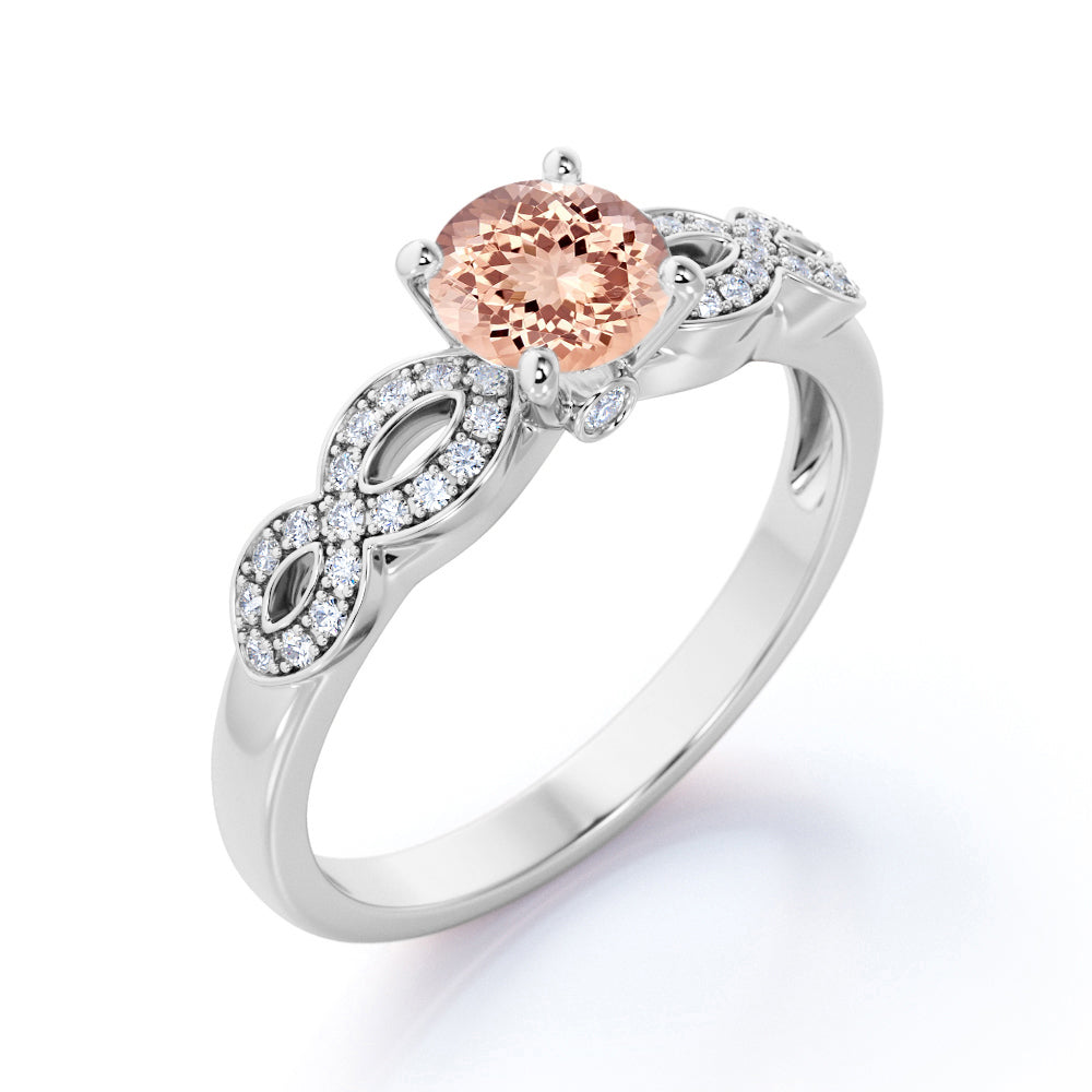 Huge 1.25 Carat Round cut Morganite and Diamond Infinity Art Deco Engagement Ring in Rose Gold