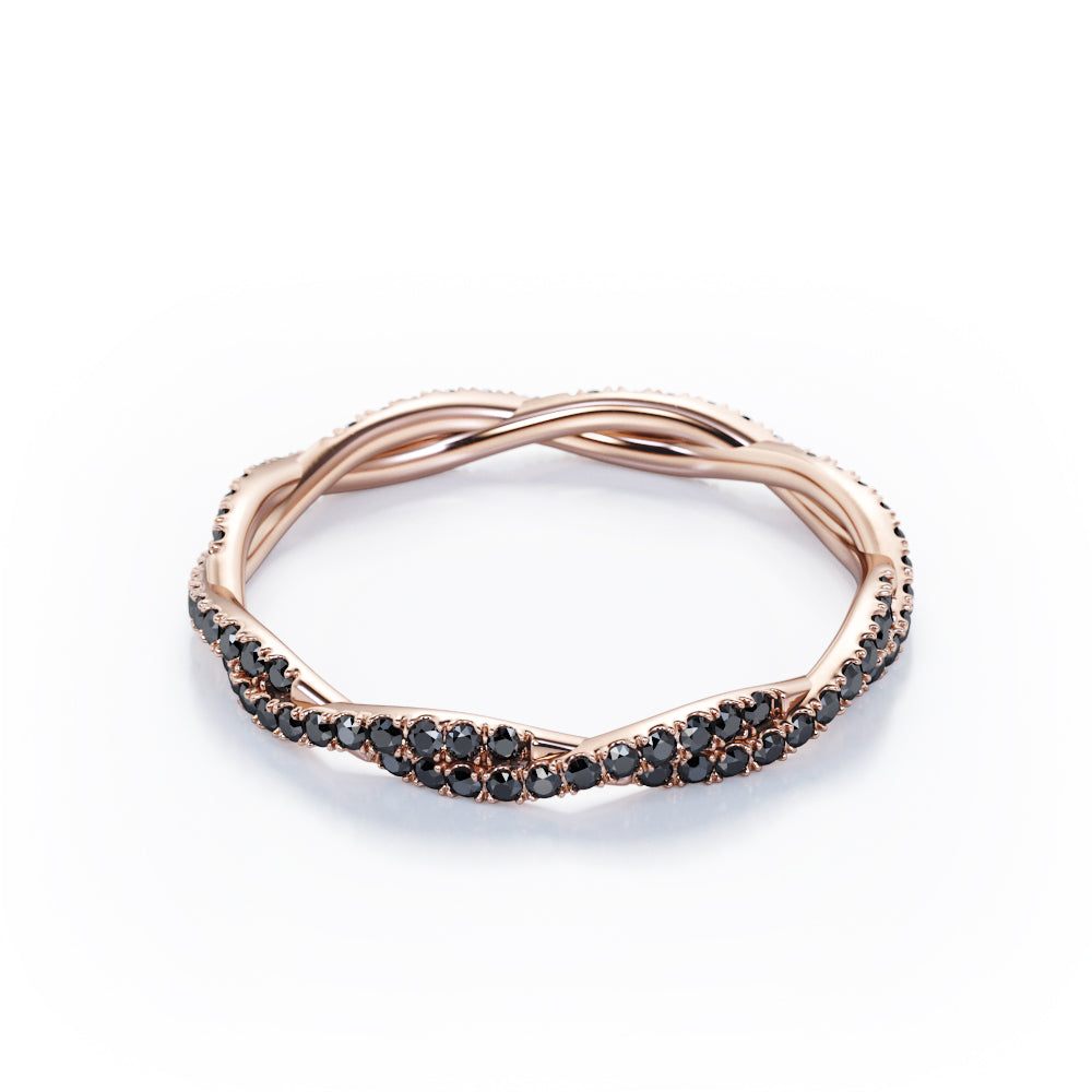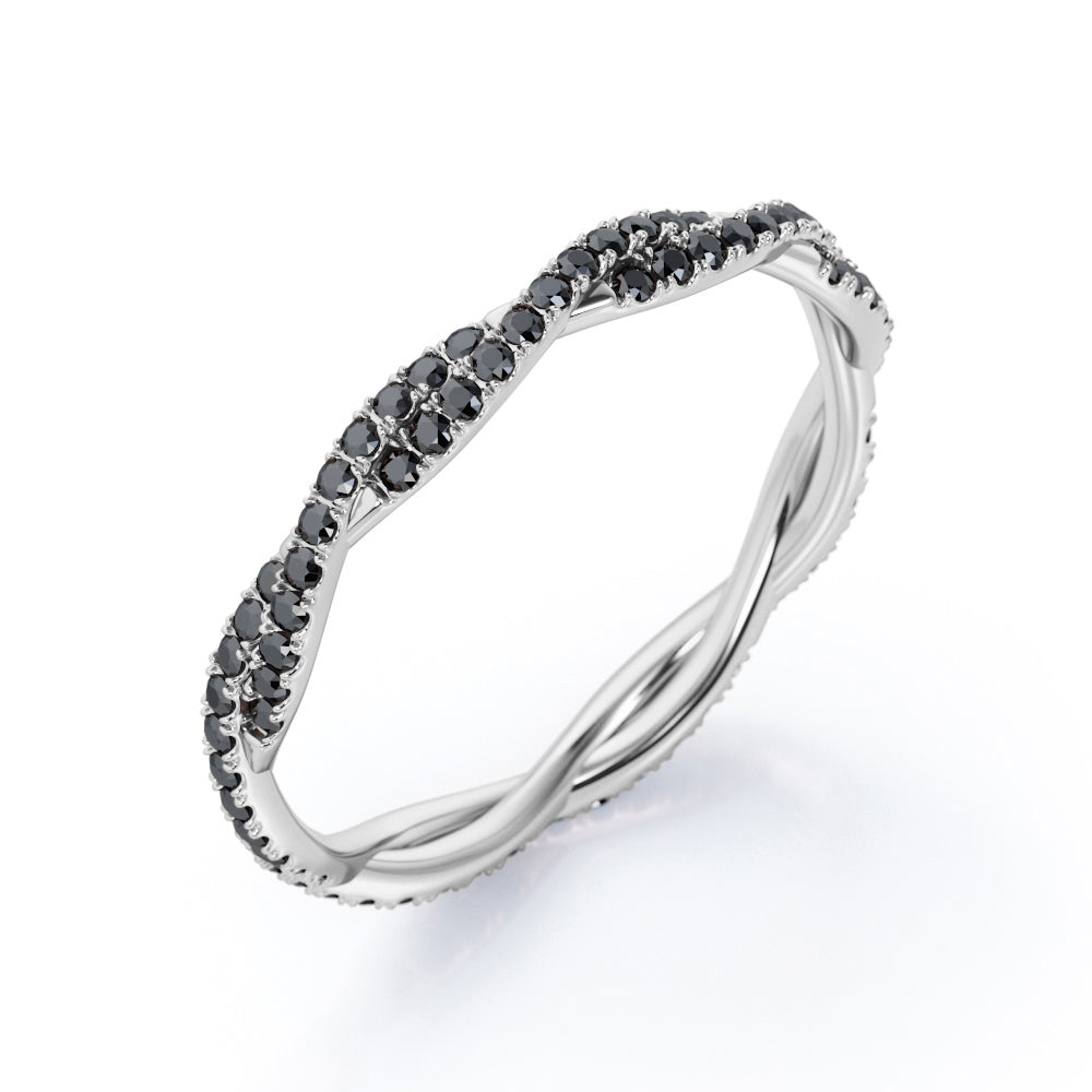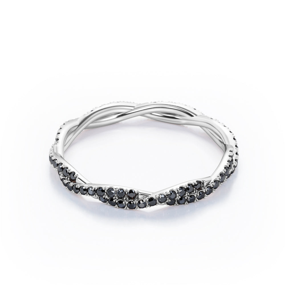 With this Infinity 0.5 TCW Round Shaped Lab Created Black Diamond Eternity Wedding Band, you can begin the most romantic chapter of your life. Handcrafted with care into a wonderful round cut by our lapidary expertise, this splendid gold created black diamond band is made up of total 0.5 carat diamond and lab-created black diamonds. Distinct and unusual, this cheap lab black diamond wedding band is ideal for those who wish to express their charisma and uniqueness. Refracting qualities of this created black diamond wedding ring band is magnificent in its brilliance and clarity and will be an unmistakable addition to any jewelry collection. This black diamond wedding band for women, represents riches and extravagance and would make an excellent gift for friends or your better half. This wedding band can be customized in 18K white, rose, yellow, or black gold over silver, or in 10K, 14K, and 18K gold, based on your preference.